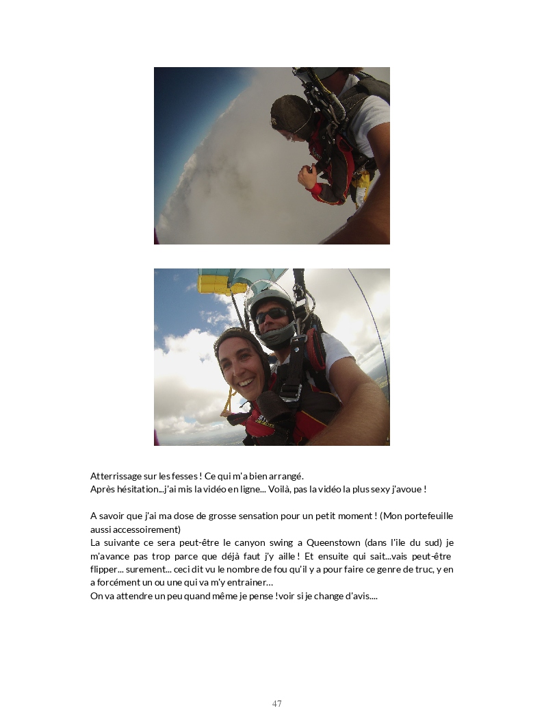 Puis suite à une traversée en bateau passe par quelques îles du pacifique avant de s'envoler à nouveau vers la Nouvelle-Zélande pour finir le petit tour du pays.