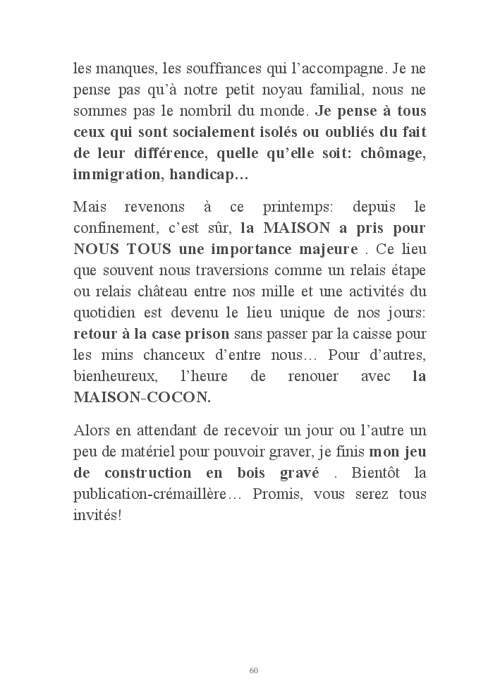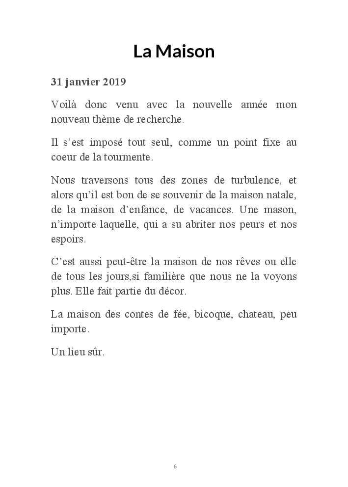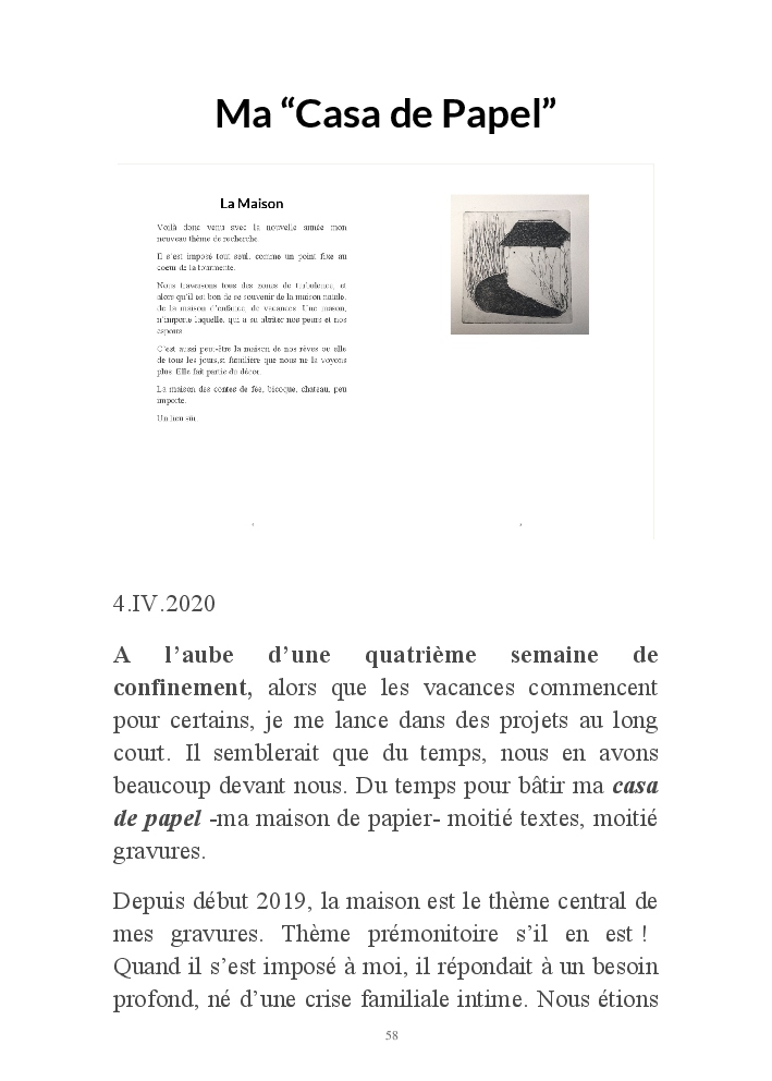 Ces maisons de papier ont aussi des fondations plus profondes et racontent une histoire intime de repli, de retour à l'essentiel imposés par les turbulences de la vie. Le confinement du printemps 2020, et le leitmotiv "Restez chez vous", leur ont donné une résonance particulière et une dimension universelle bien involontaires.