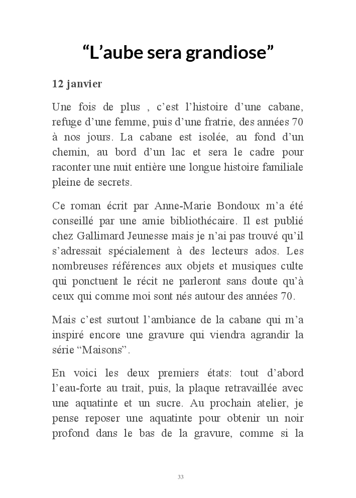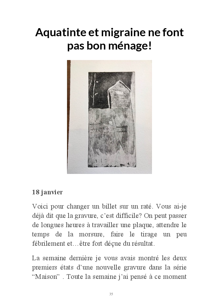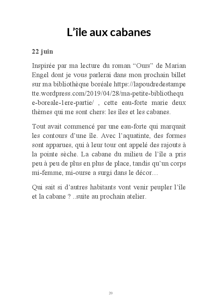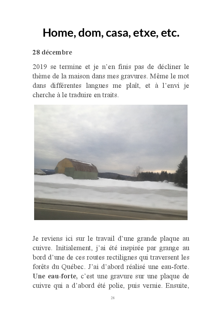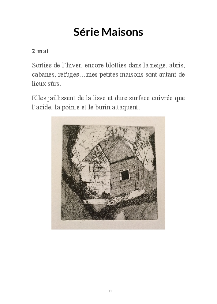 2019 fut placé sous le signe du voyage. Ma série de gravures, "Home, suite Home" , était au départ une évocation des maisons du Grand Nord telles que je les ai rêvées, et telles que je les ai enfin vues lors d'un séjour d'hiver au Québec.