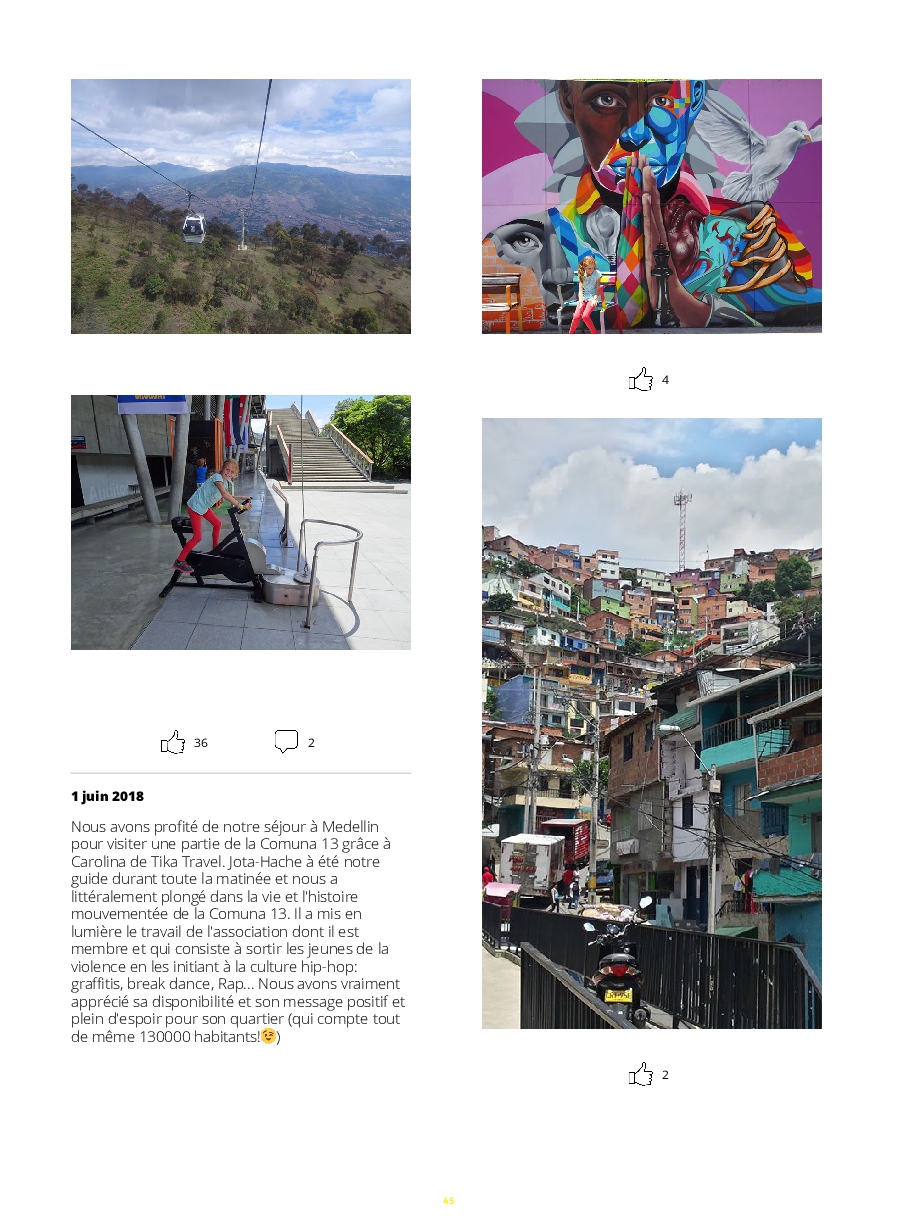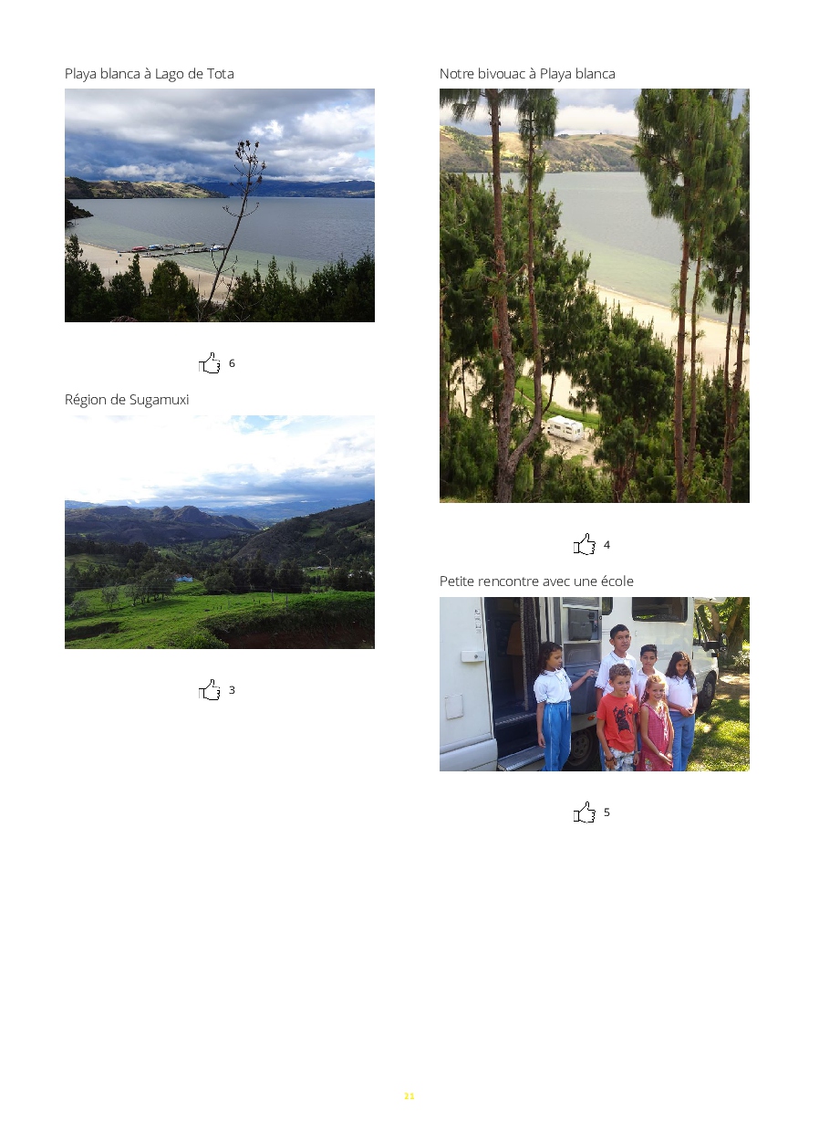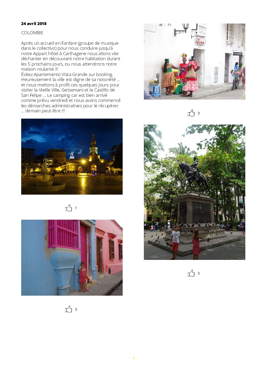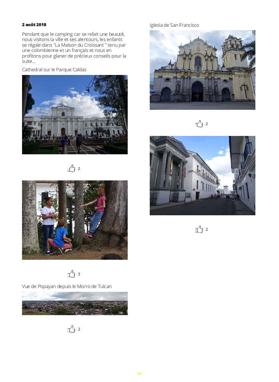 Arrivée en Amérique du sud par Carthagène des Indes. Découverte de la Colombie au fil des rencontres qui marqueront définitivement le cours de notre voyage. Jardin, Guatape, Silvia, Manizales et Lerma sont autant de noms de villes et villages qui résonnent dans nos coeurs, riches en paysages et rencontres innoubliables.