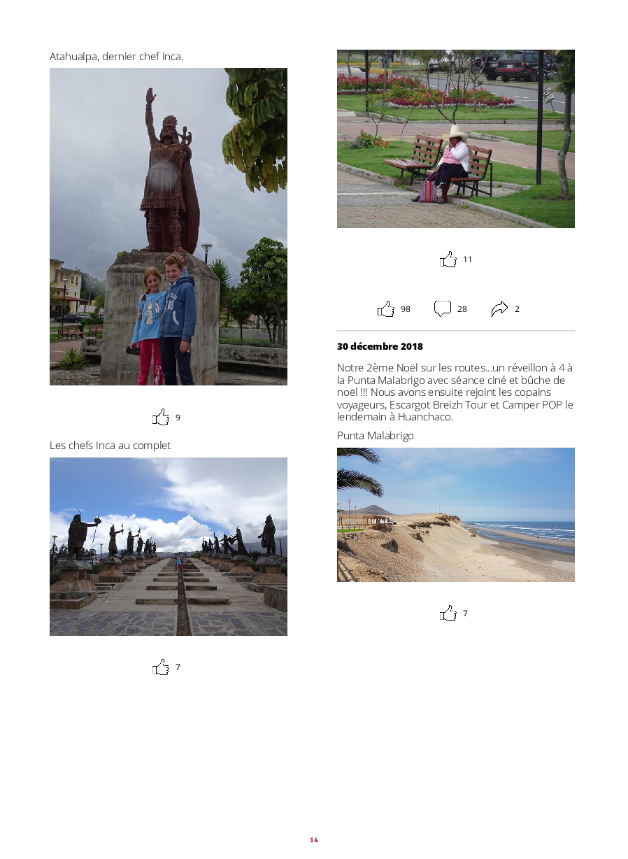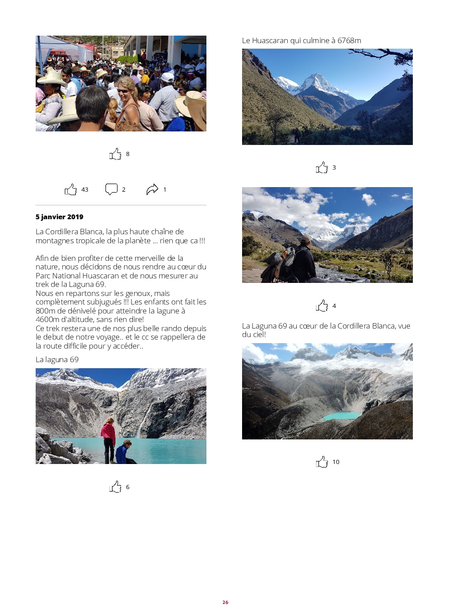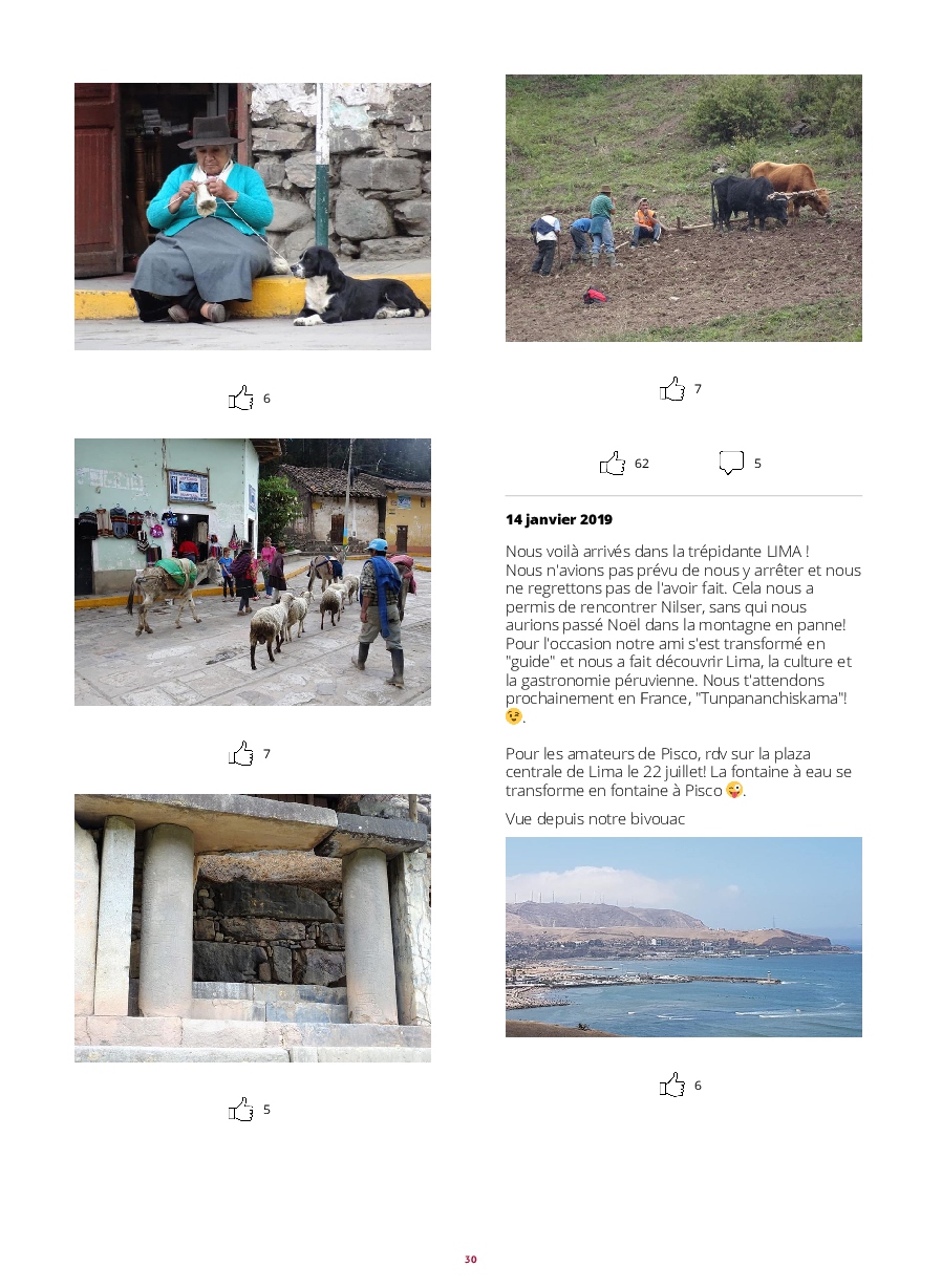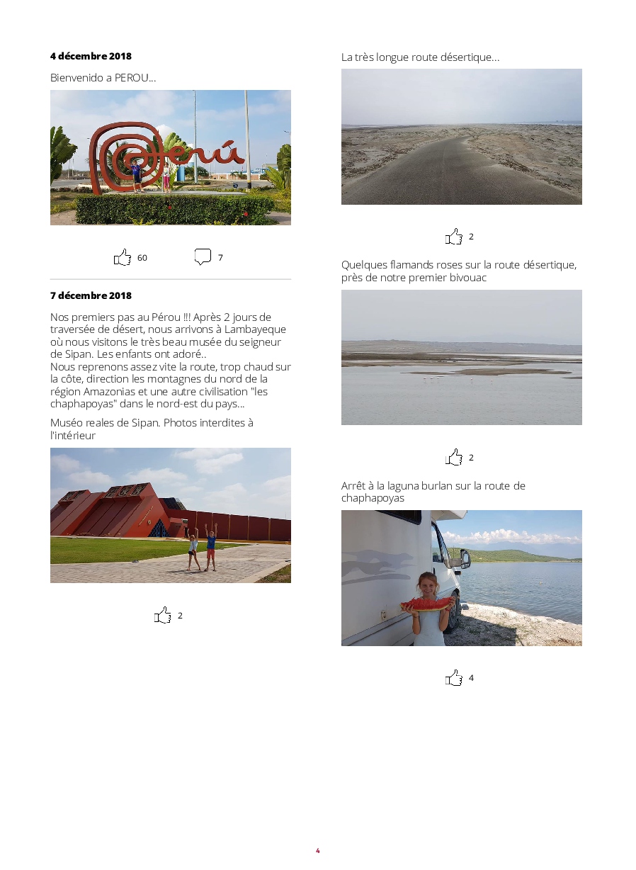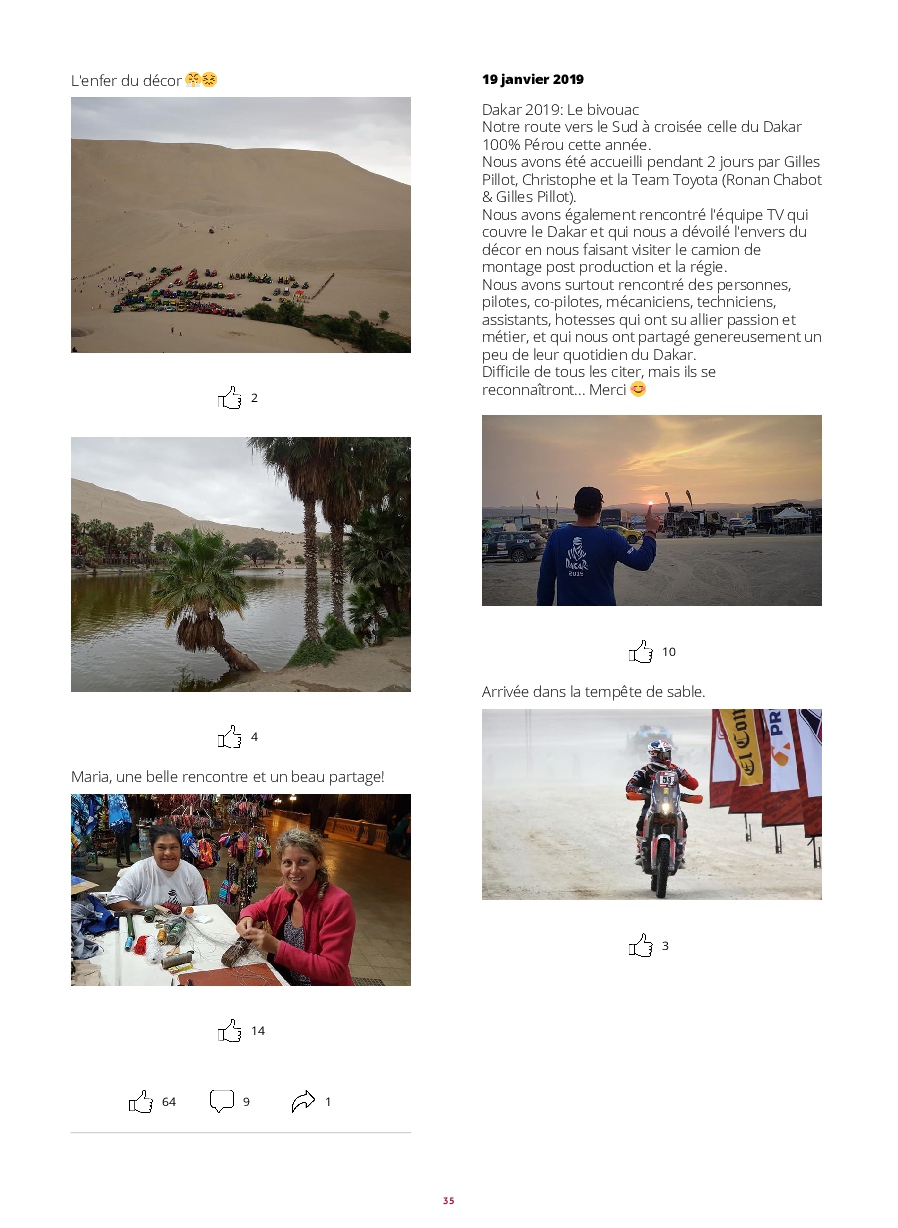 - PEROU : Lambayeque, Cataratas de Gocta, Chachapoyas, les ruines de Kuelap, Leymebamba, Cajamarca, Huanchaco, Trujillo, Chan-chan, Huacas de la Luna, Caraz, Laguna 69, Chavin de Huantar, Lima, Huacachina, Dakar 2019 à Pisco, PN de Paracas, Nazca, Arequipa