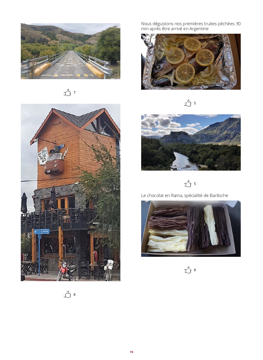 - CHILI : PN de Lauca, Iquique, Humberstone, Bahia Inglesa, Antofagasta, Vina del mar, Valparaiso, Santiago de chili, cubquecura, Salto del Laja, PN de Conguillio, Villarica