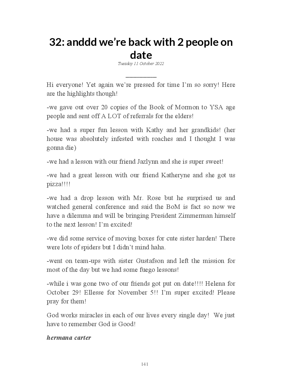 Hermana Kate Carter made the blook of their their blog Wordpress ! Support their creativity by buying their blook or create your own now on BlookUp!
