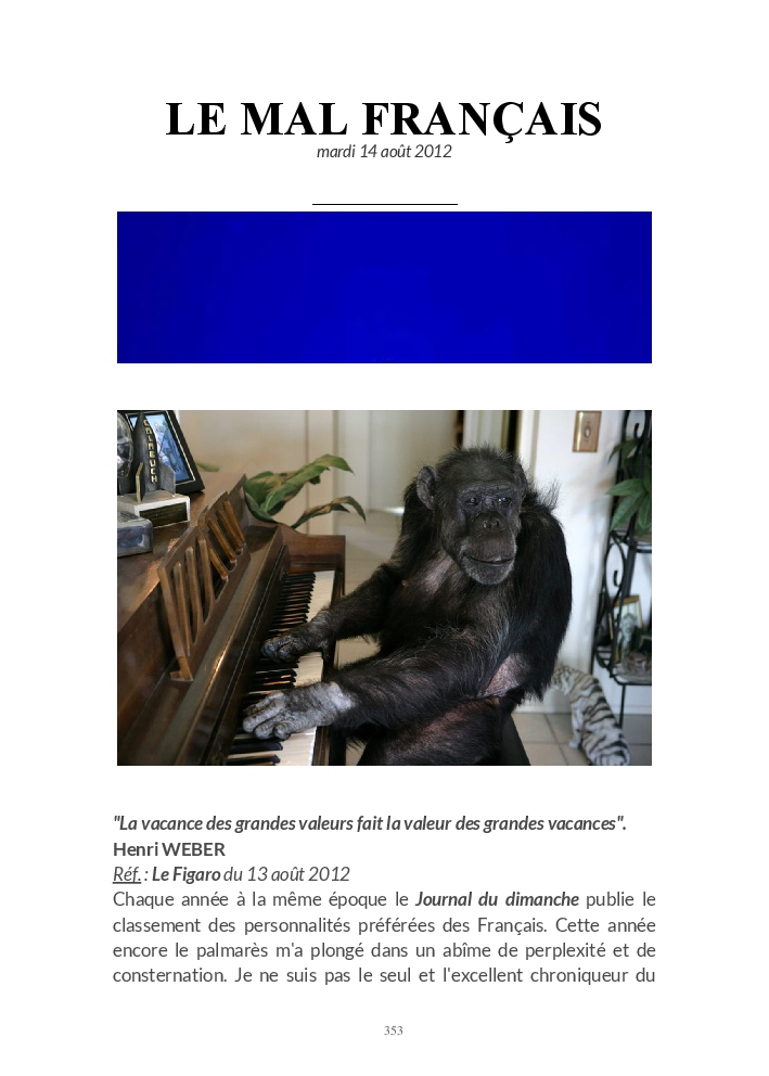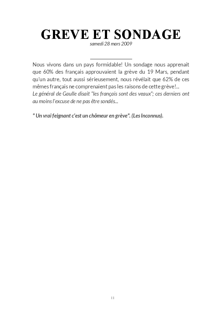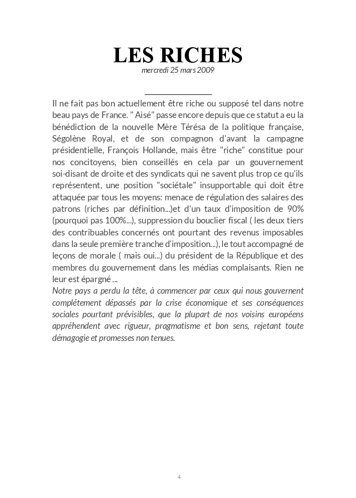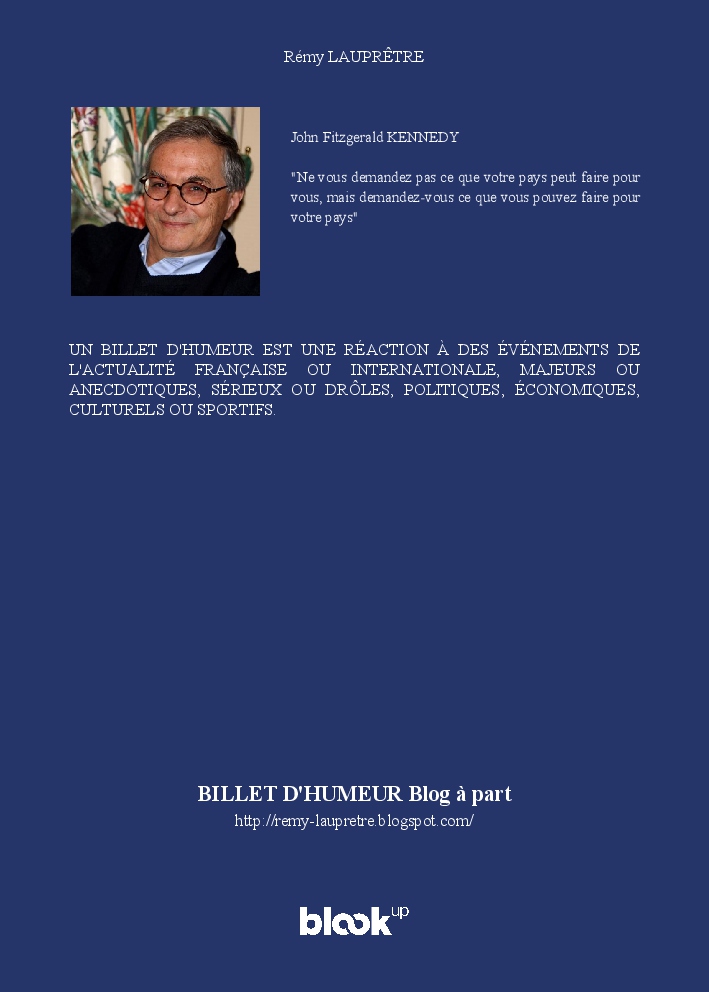 UN BILLET D'HUMEUR EST UNE RÉACTION À DES ÉVÉNEMENTS DE L'ACTUALITÉ FRANÇAISE OU INTERNATIONALE, MAJEURS OU ANECDOTIQUES, SÉRIEUX OU DRÔLES, POLITIQUES, ÉCONOMIQUES, CULTURELS OU SPORTIFS.