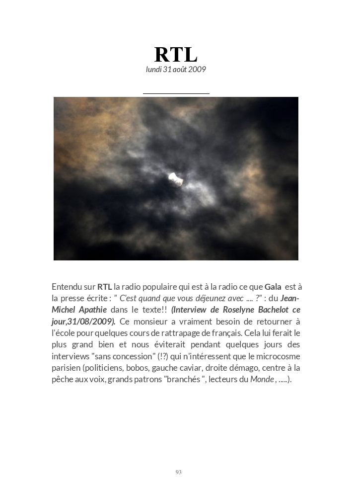 BILLET D'HUMEUR Blog à part