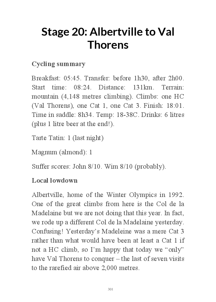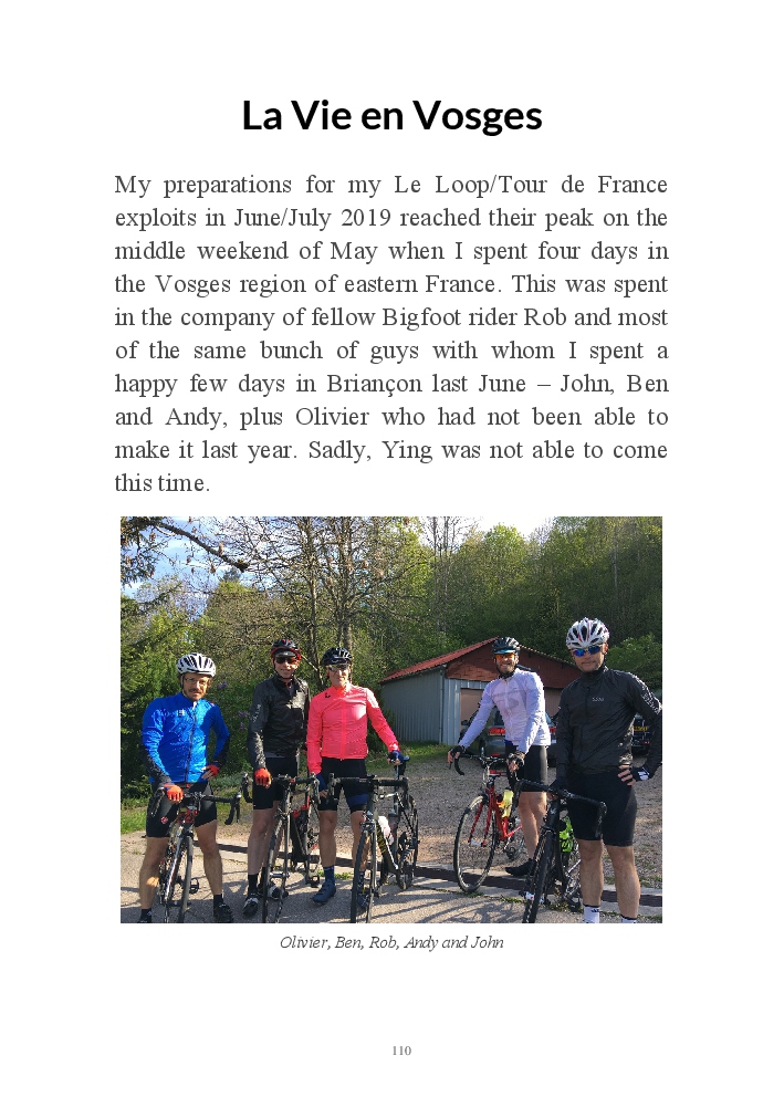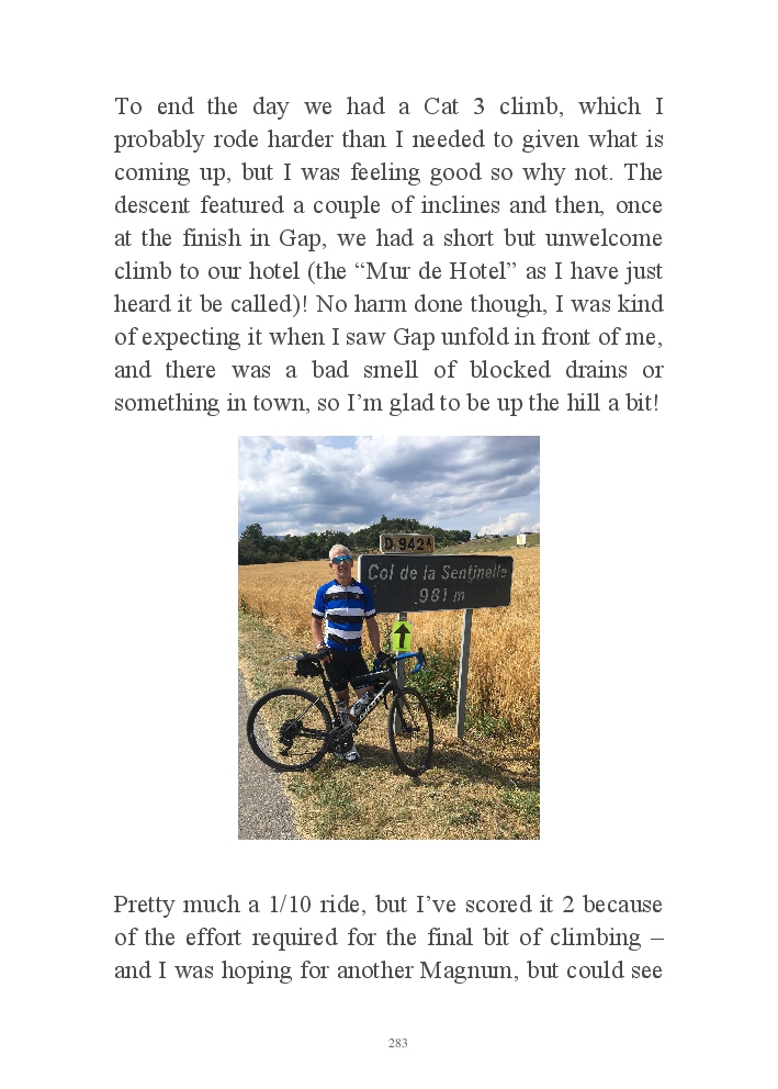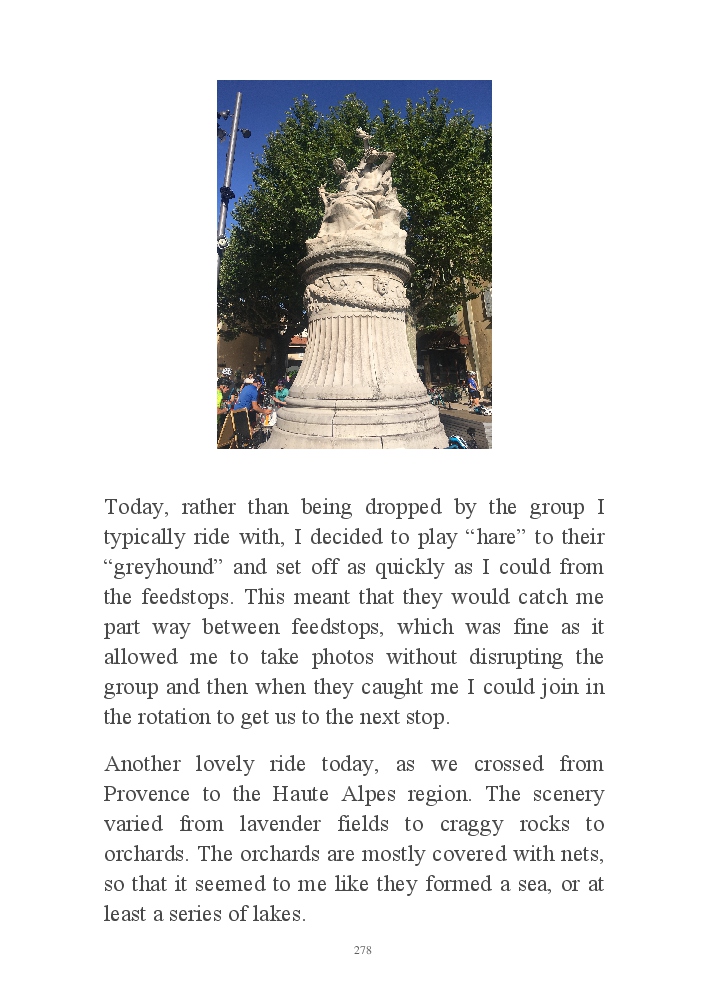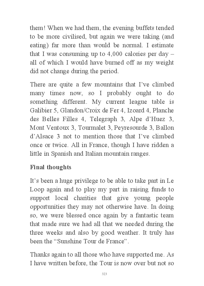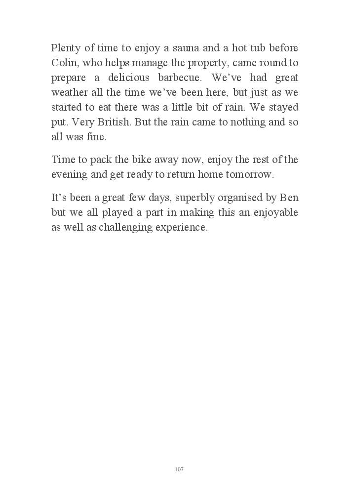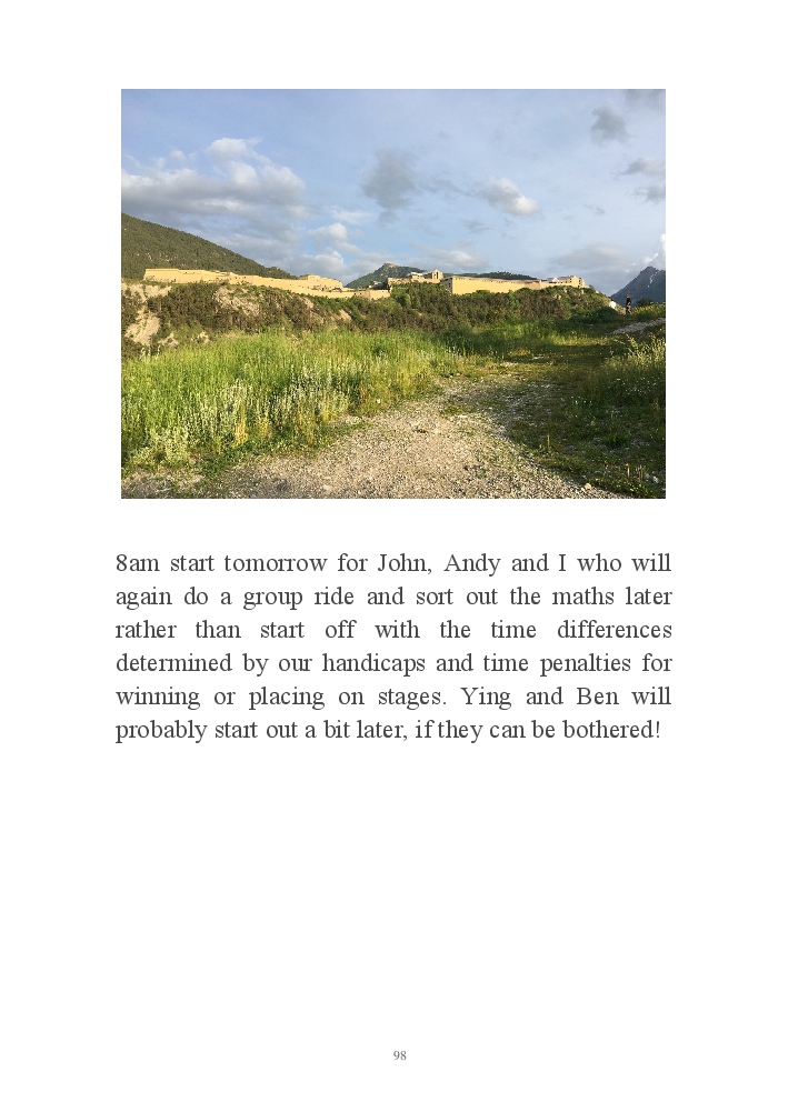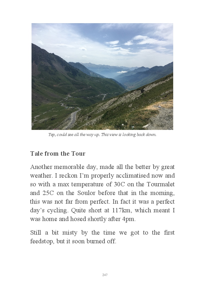The book chronicles a few short cycling trips that John took in 2018 and 2019 encompassing Spain, France and Italy before once again riding the whole route of the 2019 Tour de France, one week ahead of the professionals. John describes in words and pictures his experience of riding a three-week Grand Tour, secure in the knowledge that he has done it before and can do it again - only this time both the temperature and the mountains would be higher, presenting challenges of a different sort.