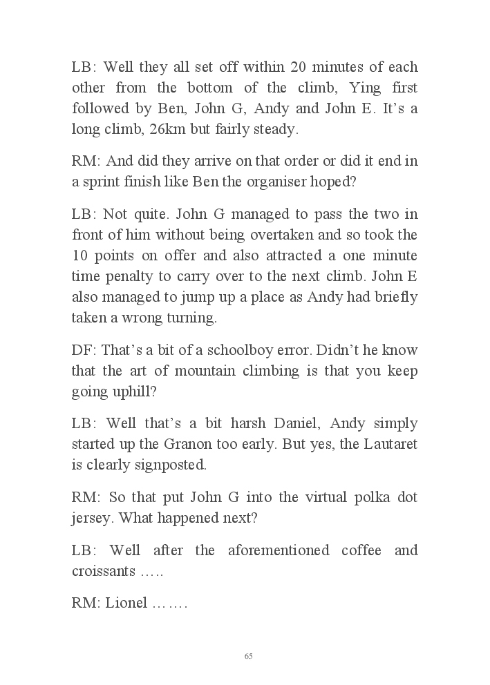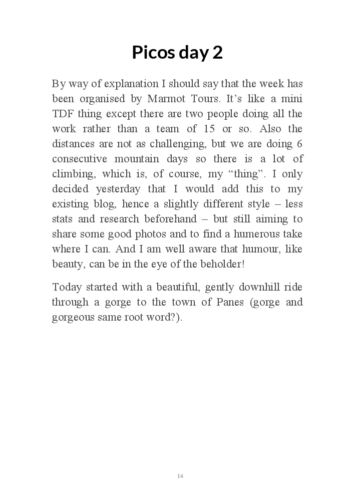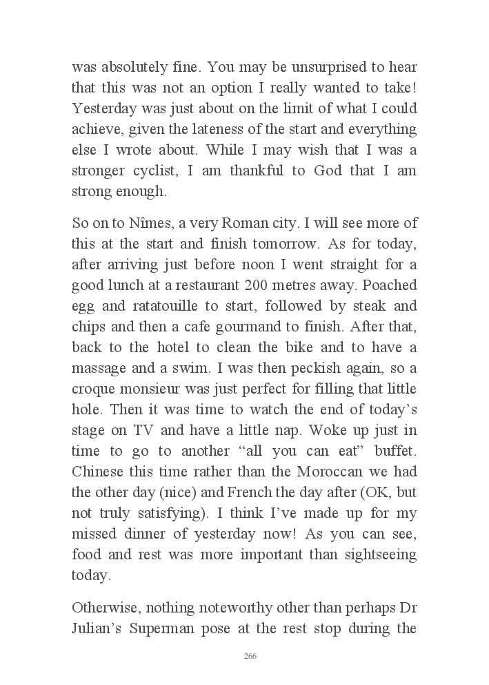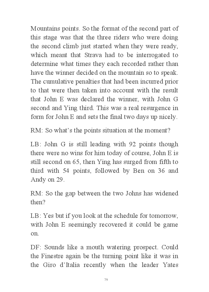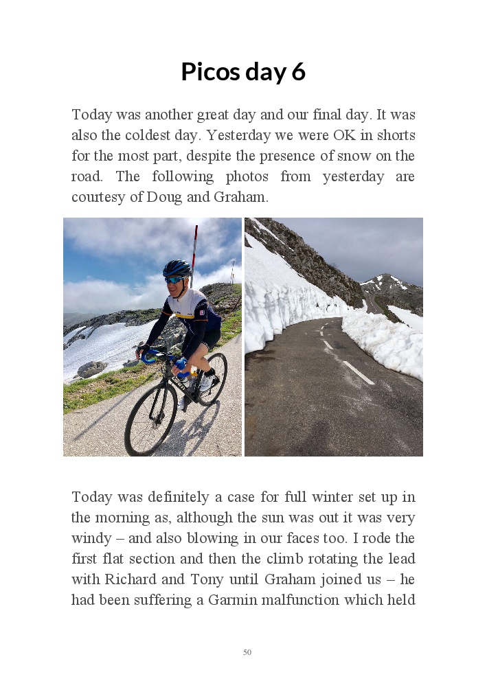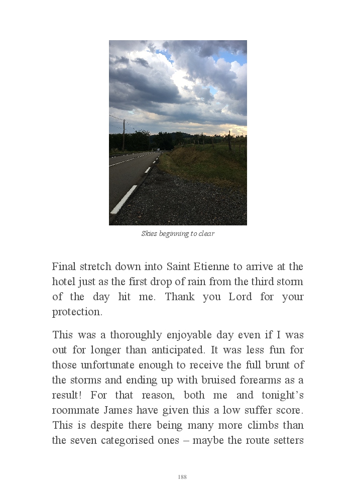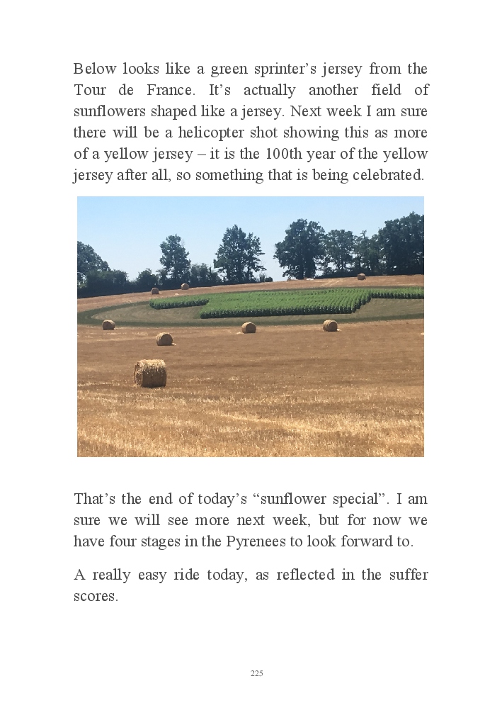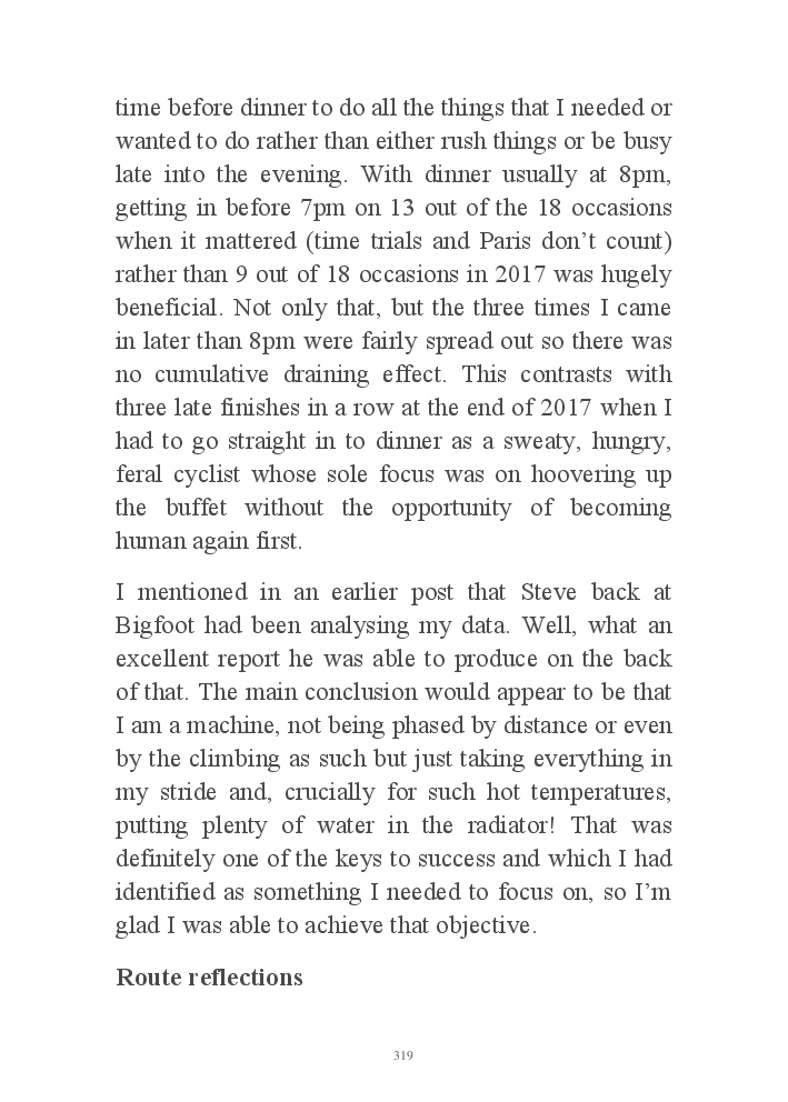 The book chronicles a few short cycling trips that John took in 2018 and 2019 encompassing Spain, France and Italy before once again riding the whole route of the 2019 Tour de France, one week ahead of the professionals. John describes in words and pictures his experience of riding a three-week Grand Tour, secure in the knowledge that he has done it before and can do it again - only this time both the temperature and the mountains would be higher, presenting challenges of a different sort.