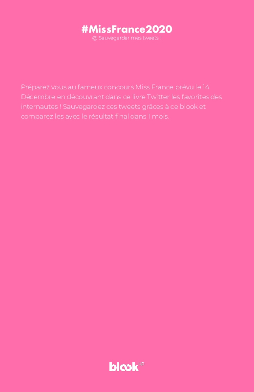 #MissFrance2020 made the blook of their their Twitter account ! Support their creativity by buying their blook or create your own now on BlookUp!