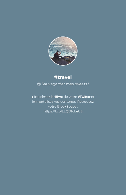 #travel made the blook of their their Twitter account ! Support their creativity by buying their blook or create your own now on BlookUp!
