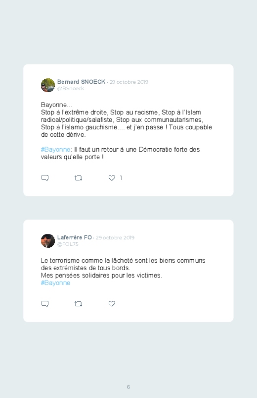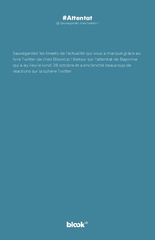 Sauvegardez les tweets de l'actualité qui vous a marqué grâce au livre Twitter de chez BlookUp ! Retour sur l'attentat de Bayonne qui a eu lieu le lundi 28 octobre et a enclenché beaucoup de réactions sur la sphère Twitter.