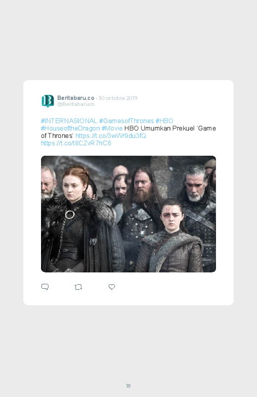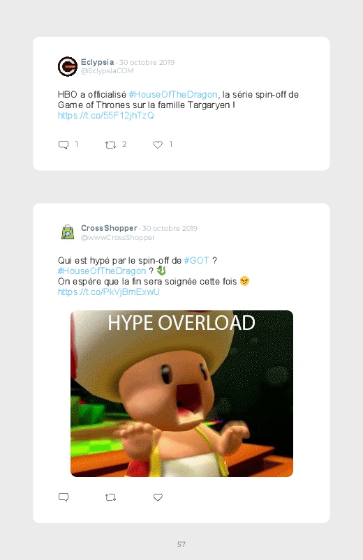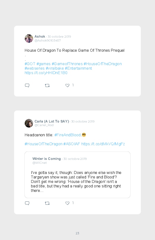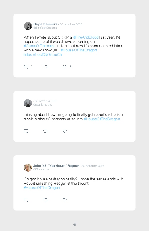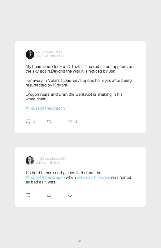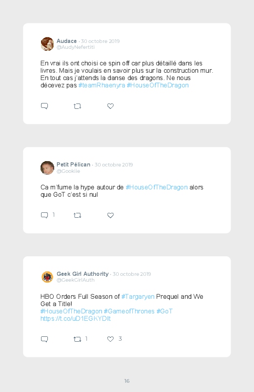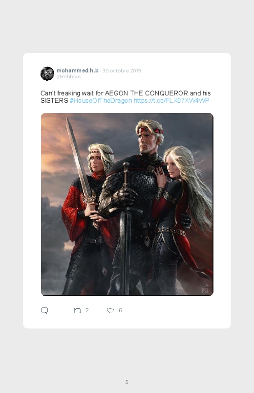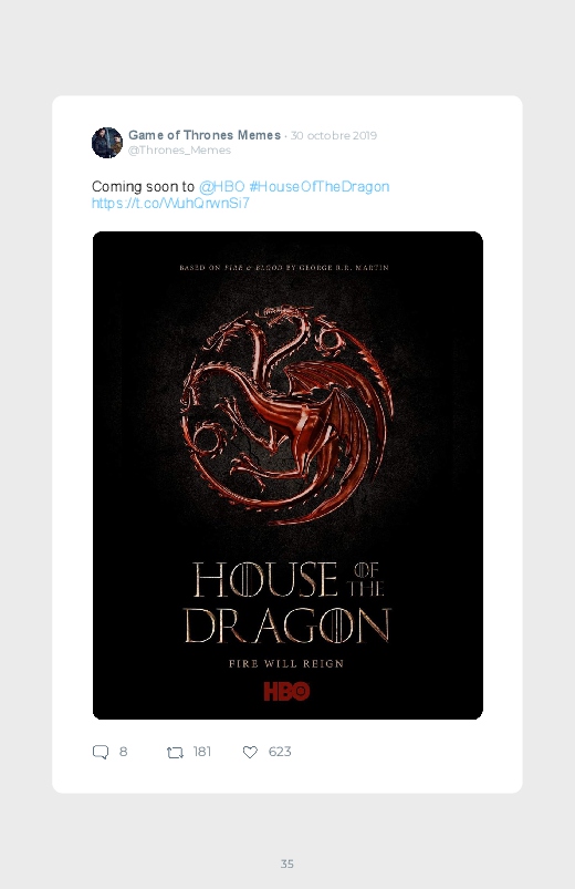 La célèbre série mondialement reconnue Game Of Thrones revient dans un prequel autour du personnage de Daenerys de quoi aider les fans à se remettre de la fin de la série ! Découvrez les premières réactions des internautes face à cette annonce dans ce livre Twitter. Vous aussi sauvegardez les tweets de votre film ou série préféré !