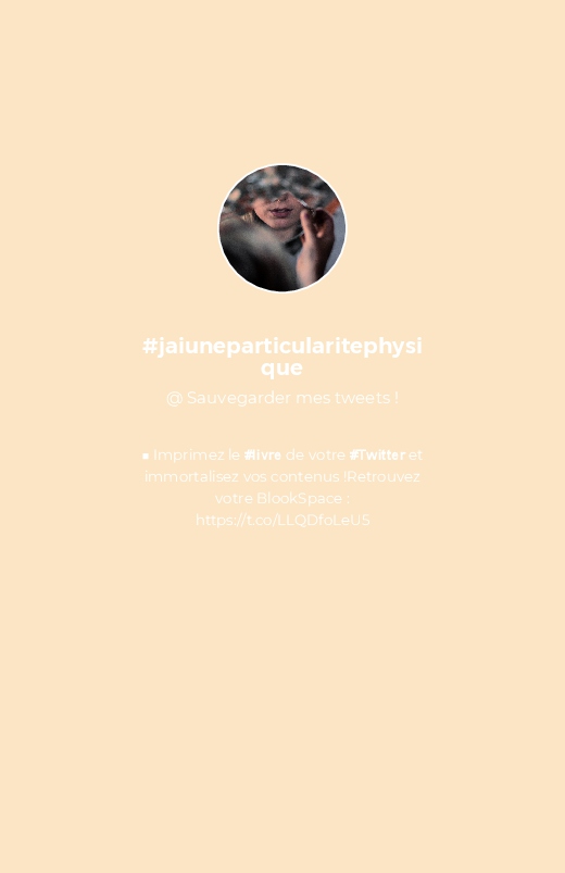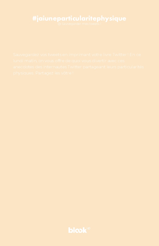 #jaiuneparticularitephysique hat das Buch seinen Twitter Account erstellt! Unterstütze seine Kreativität, indem du seinen Blook kaufst oder erstelle jetzt deinen eigenen auf BlookUp!