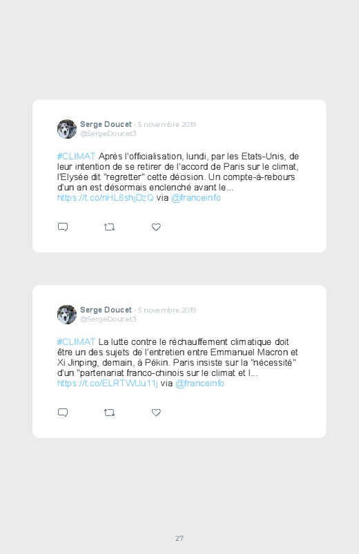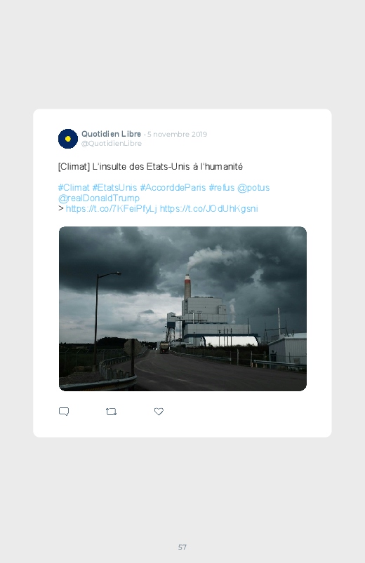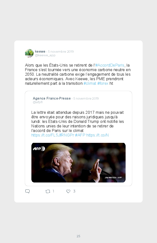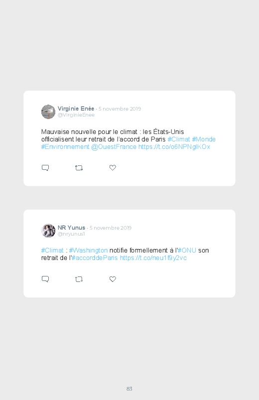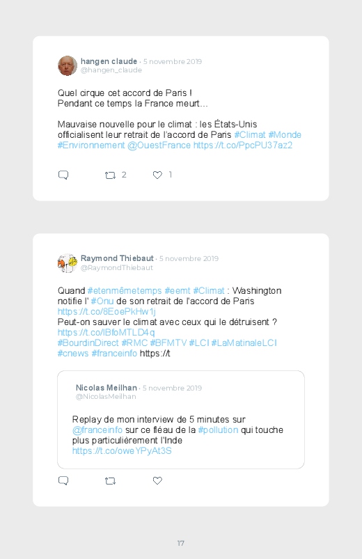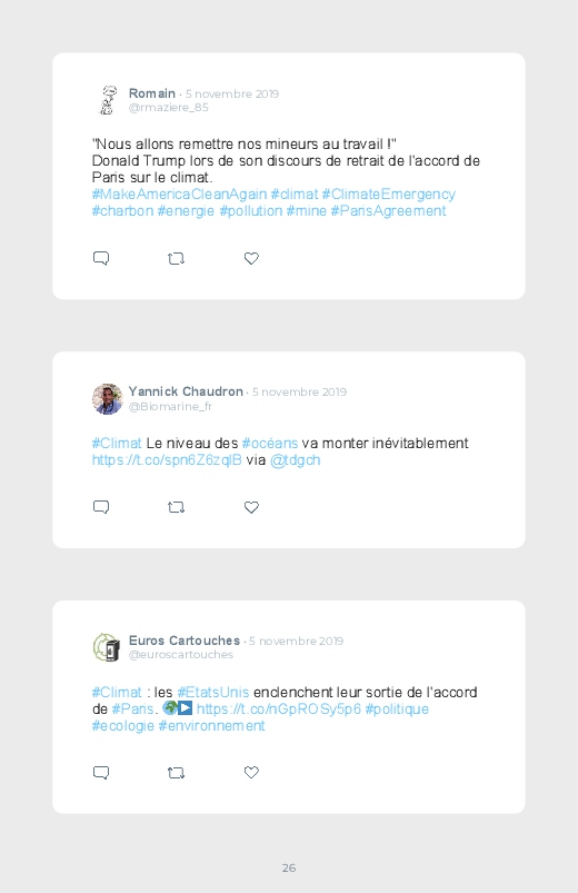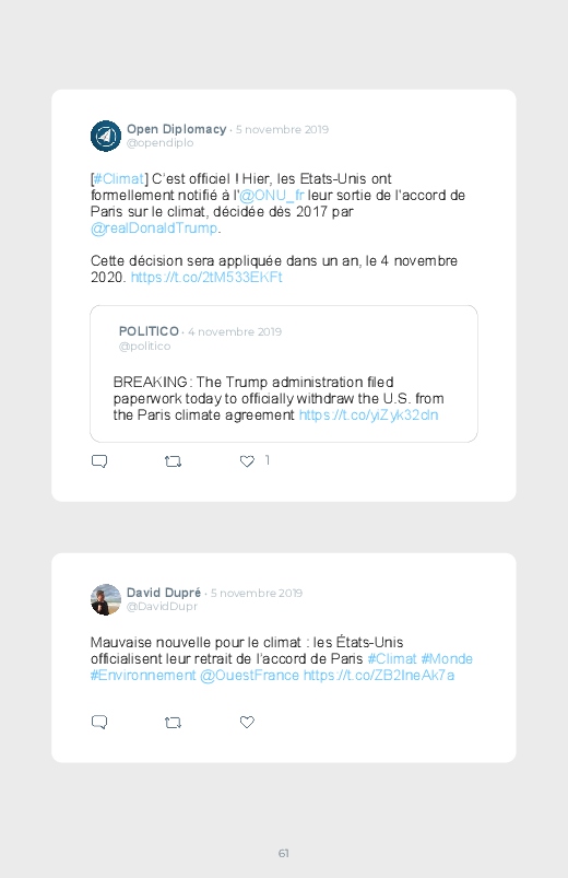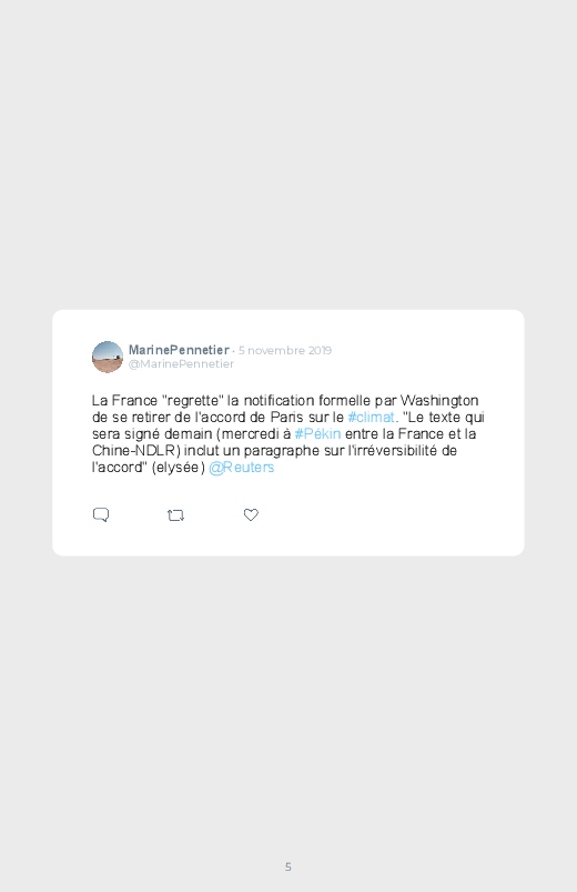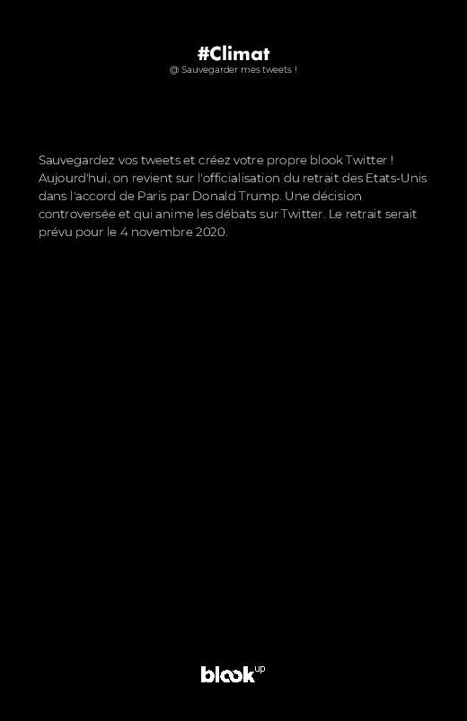 Sauvegardez vos tweets et créez votre propre blook Twitter ! Aujourd'hui, on revient sur l’officialisation du retrait des Etats-Unis dans l'accord de Paris par Donald Trump. Une décision controversée et qui anime les débats sur Twitter. Le retrait serait prévu pour le 4 novembre 2020.