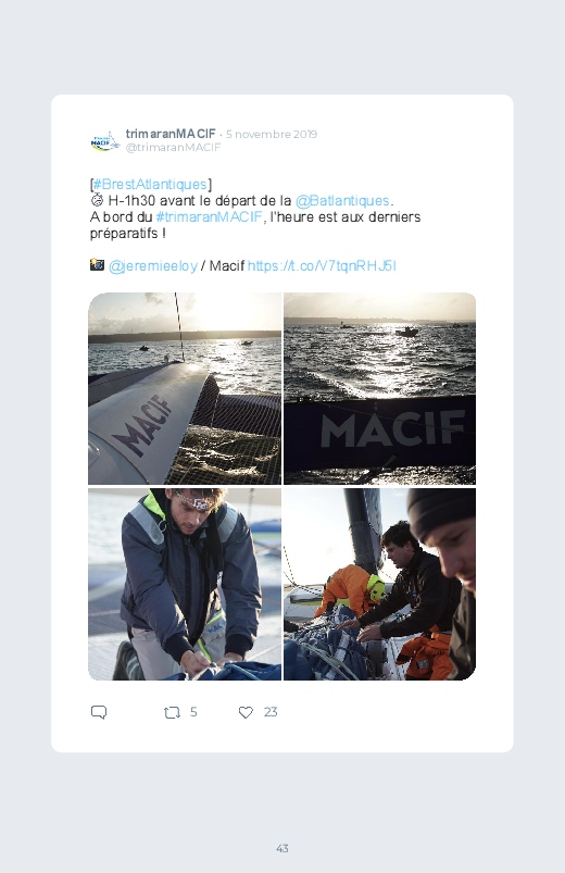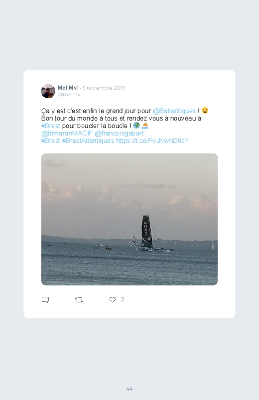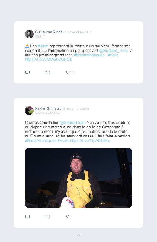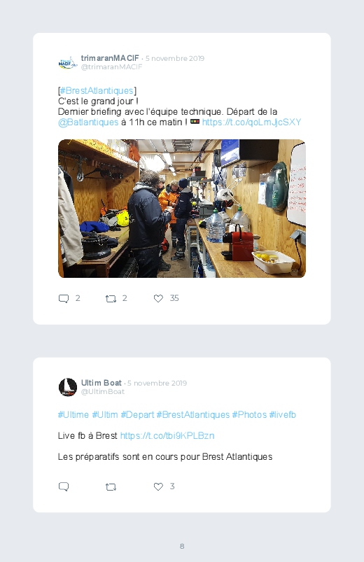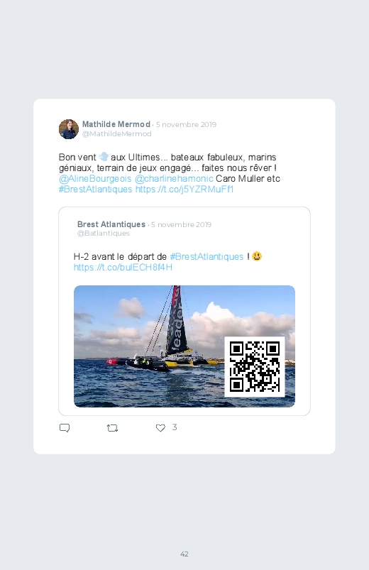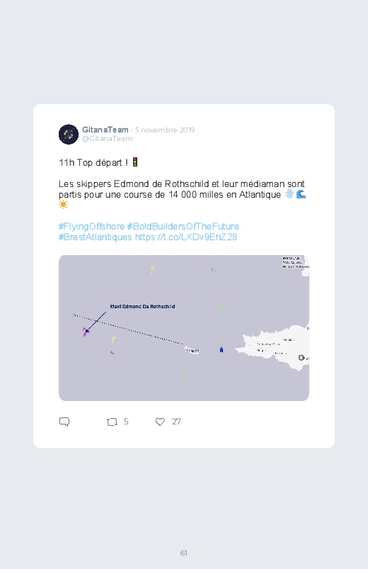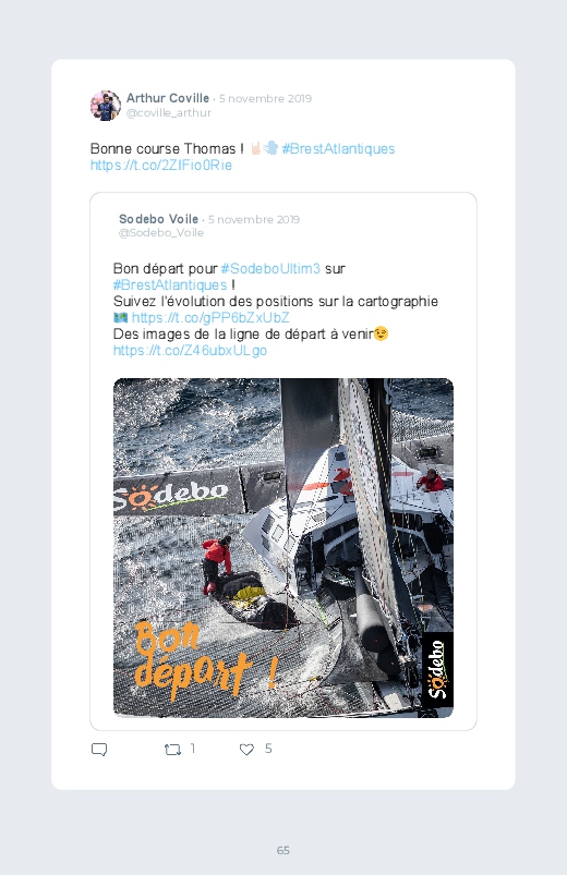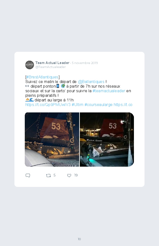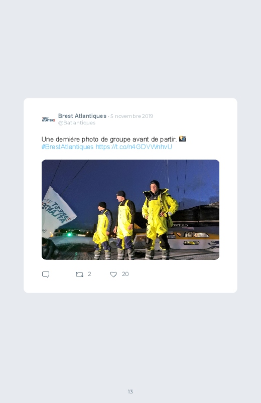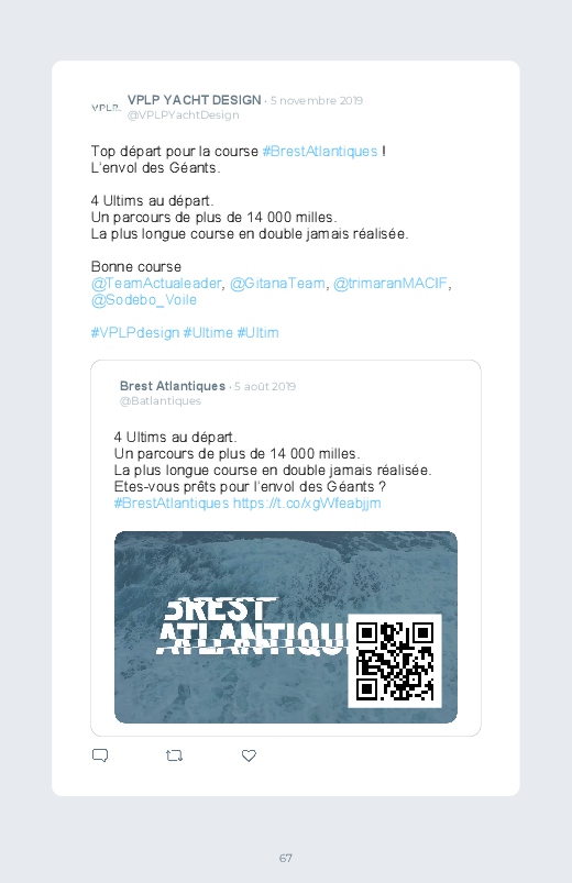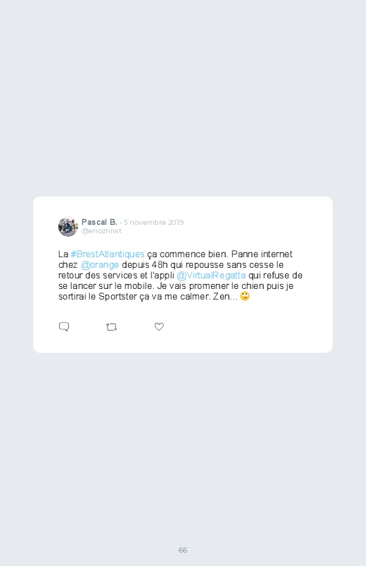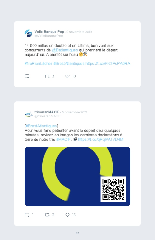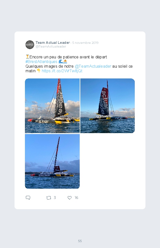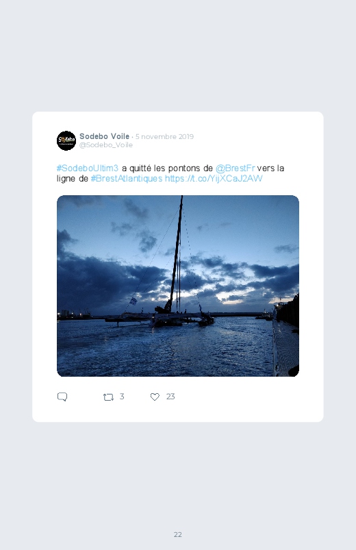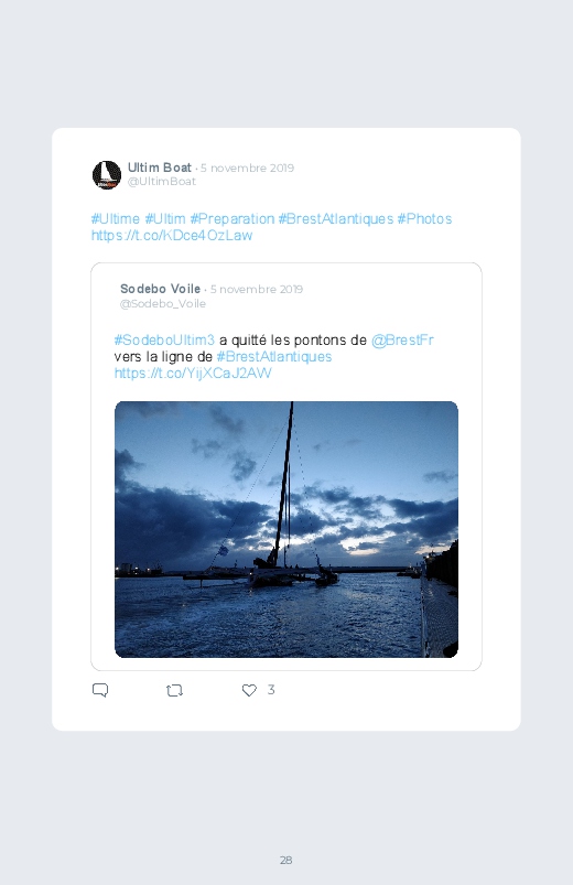 La fameuse course Brest Atlantiques a commencé ! Top départ ce mardi à 11h les quatre voiliers les plus rapides du monde à s’élancer pour un tour de l’Atlantique jusqu’en Afrique du Sud, en passant par le Brésil, puis un retour vers Brest. Soutenez votre voilier favoris et sauvegardez vos tweets grâce au livre Twitter de BlookUp.
