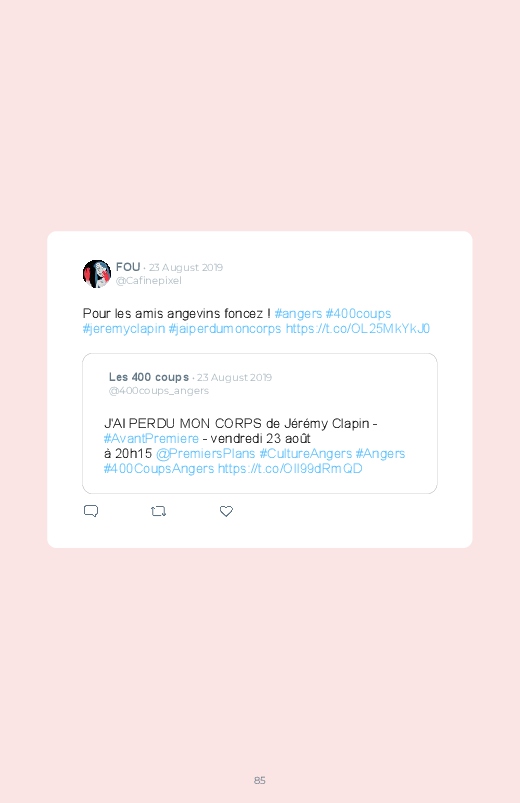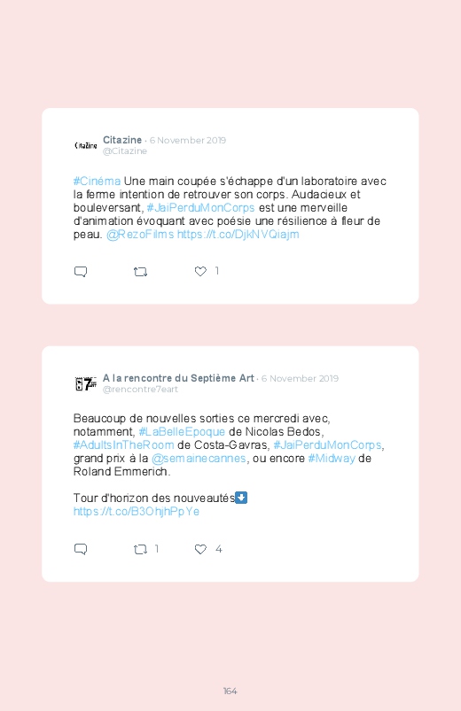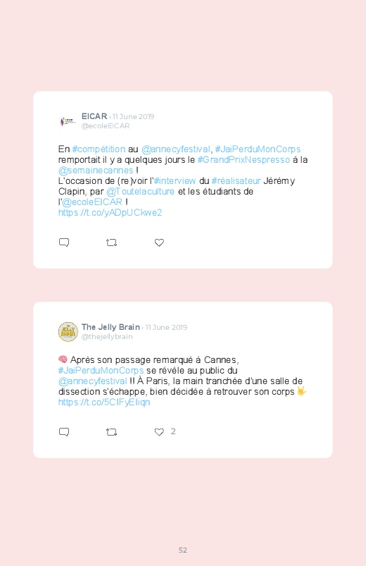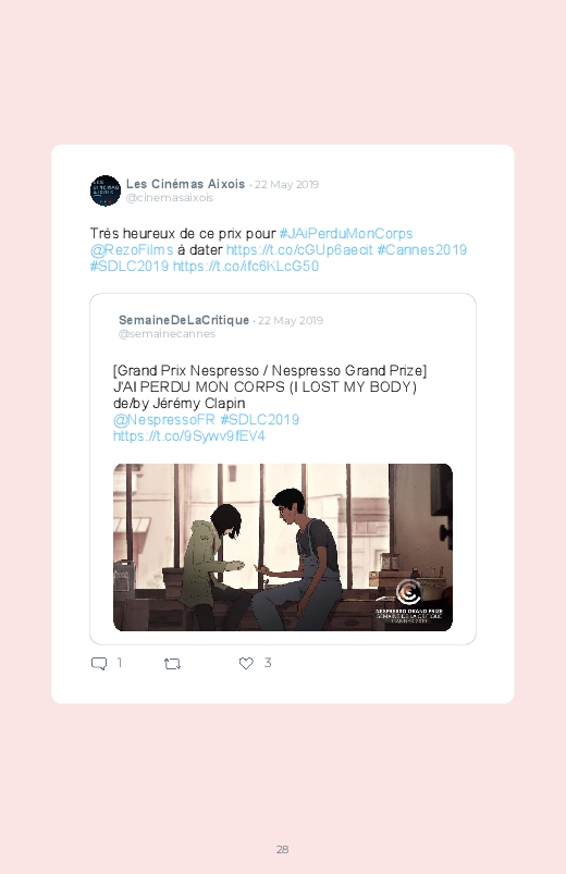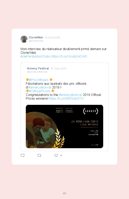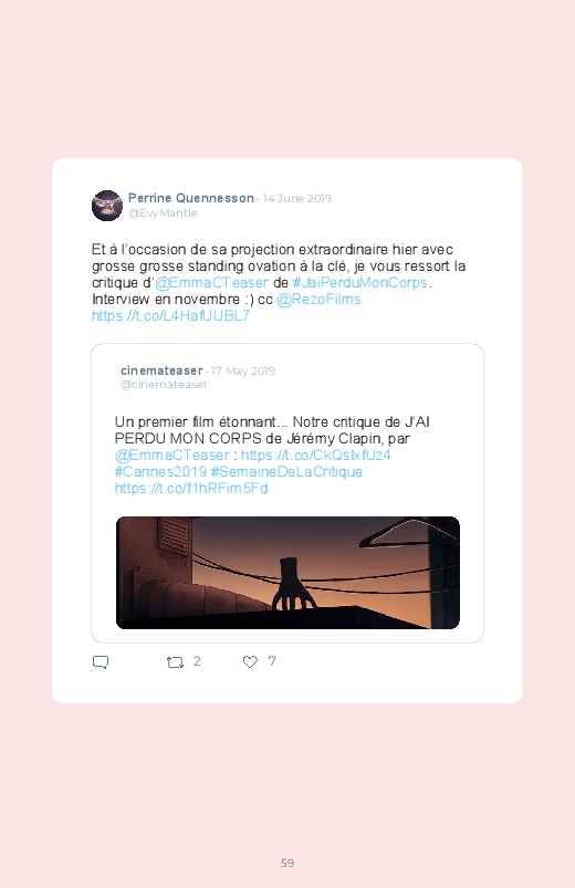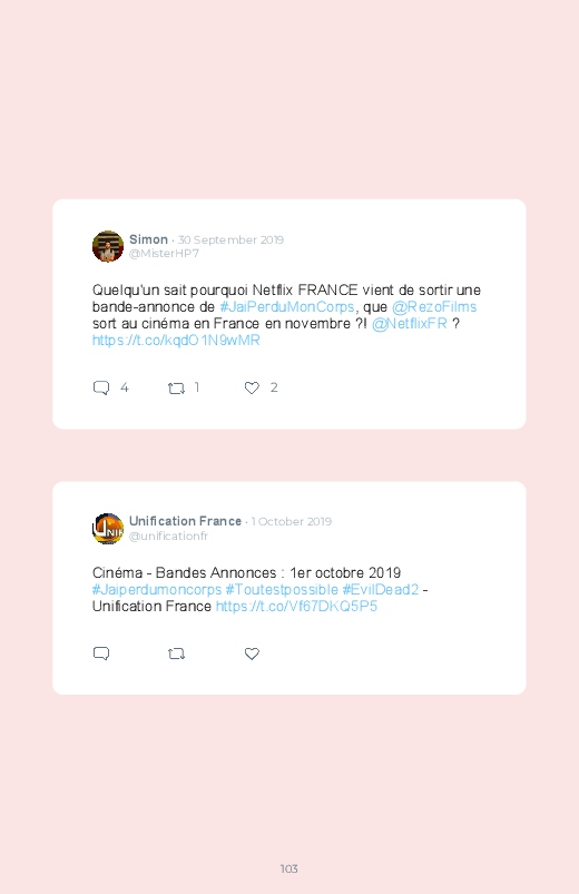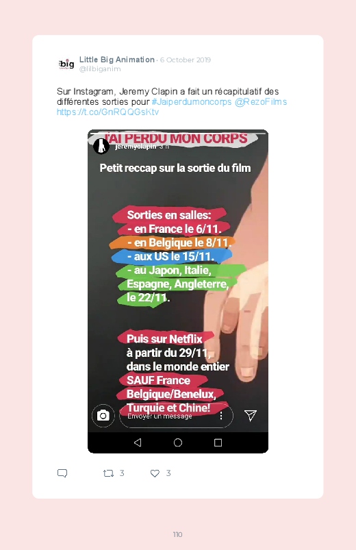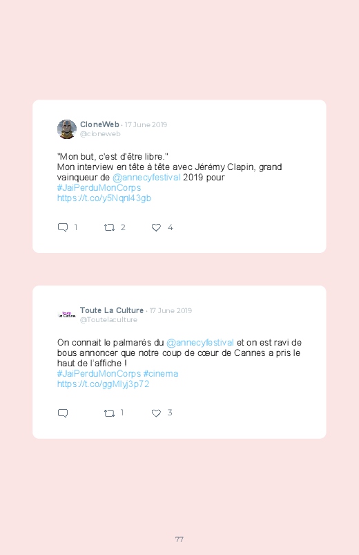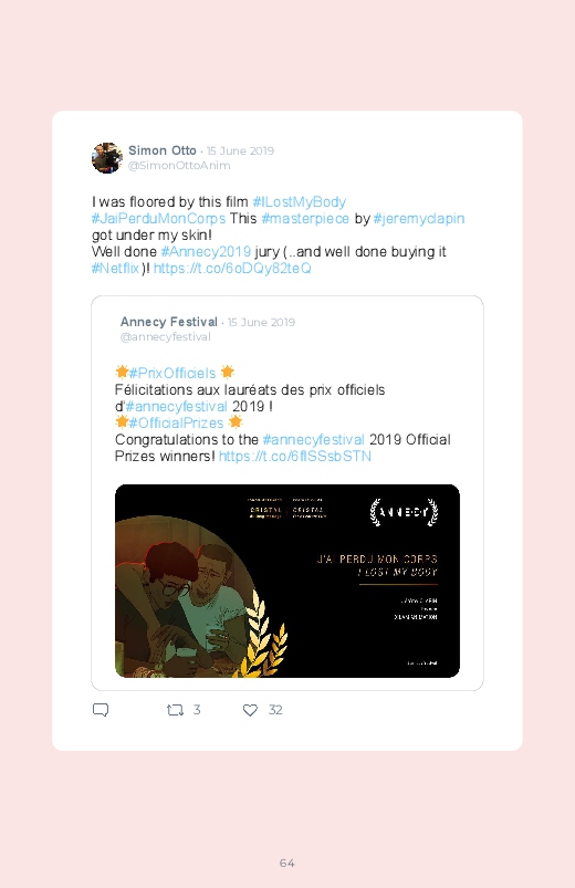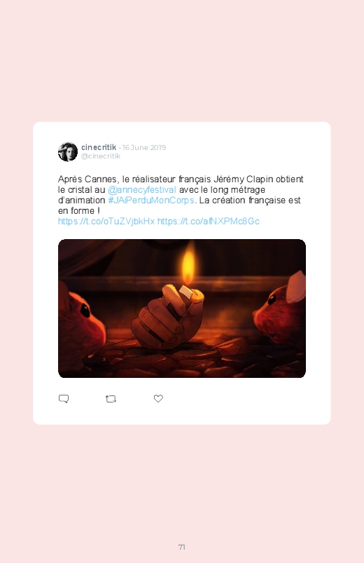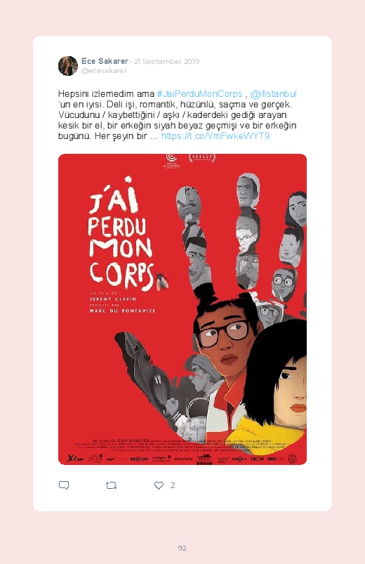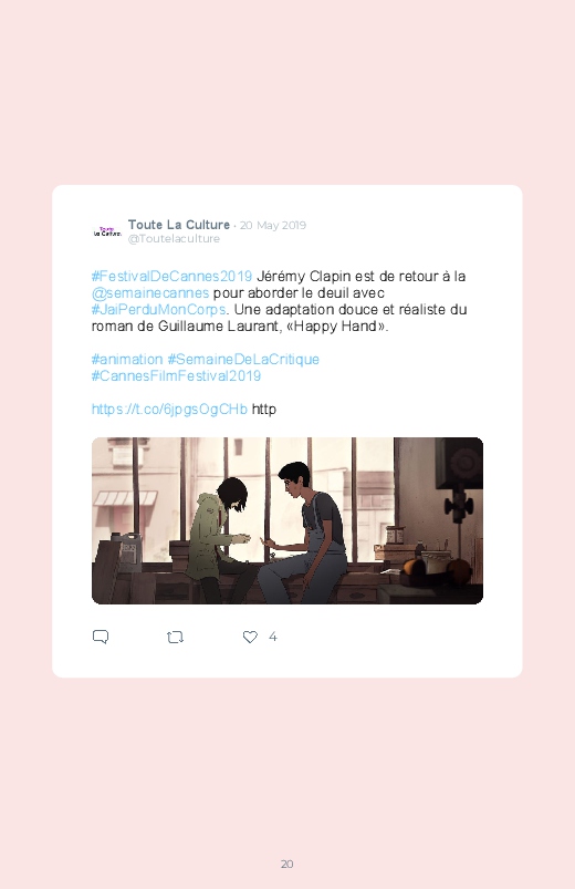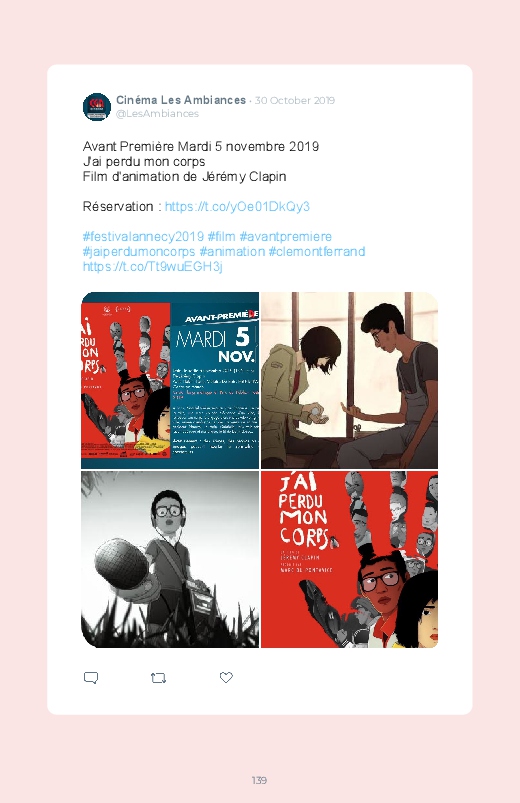 Aujourd'hui sort le long métrage d’animation "Jai perdu mon corps", un film français aux nombreux prix et nominations salué par la critique publique et de la presse. Réalisé par Jérémy Clapin, embarqué pour ce thriller tout aussi bouleversant que émouvant. Vous aussi soyez créatif en sauvegardant vos tweets et en réalisant votre livre Twitter.