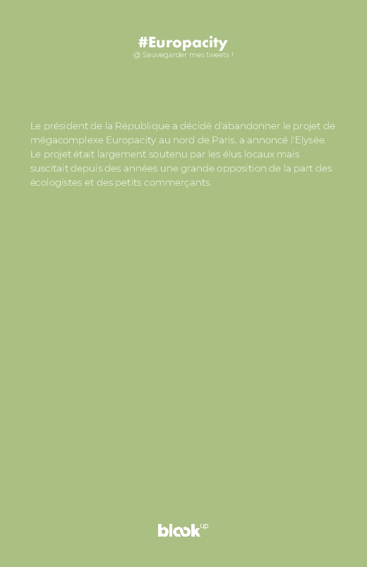 #Europacity a fait le livre de son compte Twitter ! Soutenez sa créativité en achetant son blook ou créez le vôtre dès maintenant sur BlookUp !