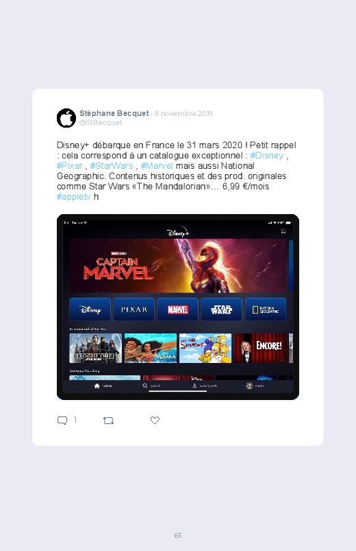 La plateforme tant attendue Disney + cesse de faire durer le suspens et a enfin annoncé sa date de sortie en France ! Découvrez l'univers de Disney, Marvel, Star Wars et bien d'autres encore dès le 31 mars en streaming depuis chez vous. De quoi ravir les fans et des films concernés et raviver l'âme d'enfant chez chacun de nous ! Sauvegardez vos tweets grâce au livre Twitter.