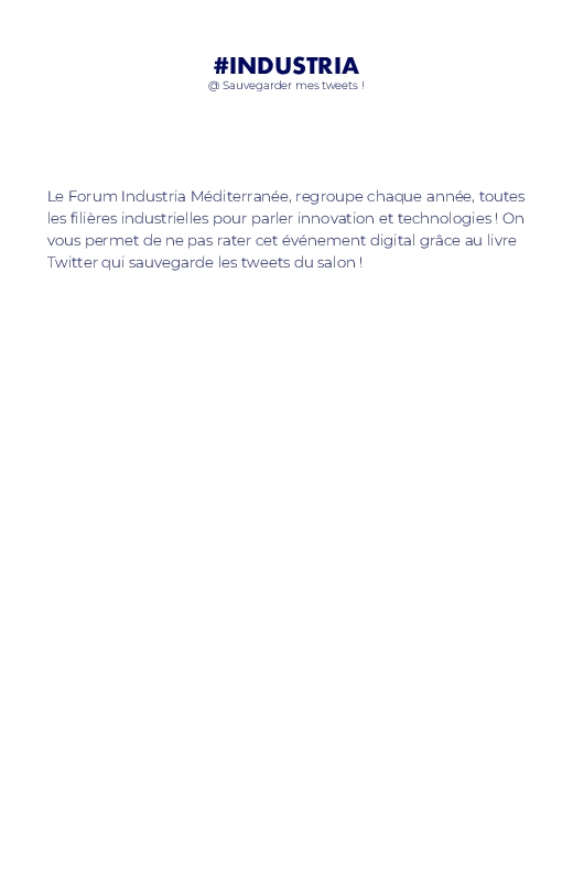 Le Forum Industria Méditerranée, regroupe chaque année, toutes les filières industrielles pour parler innovation et technologies ! On vous permet de ne pas rater cet événement digital grâce au livre Twitter qui sauvegarde les tweets du salon !