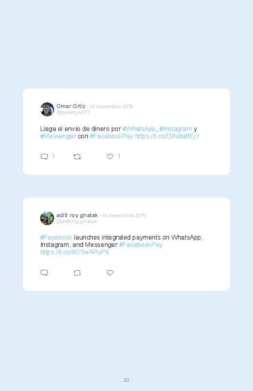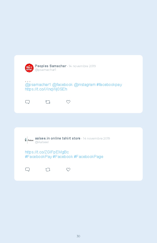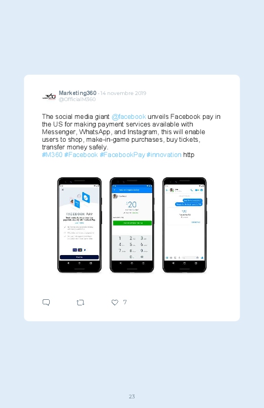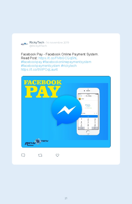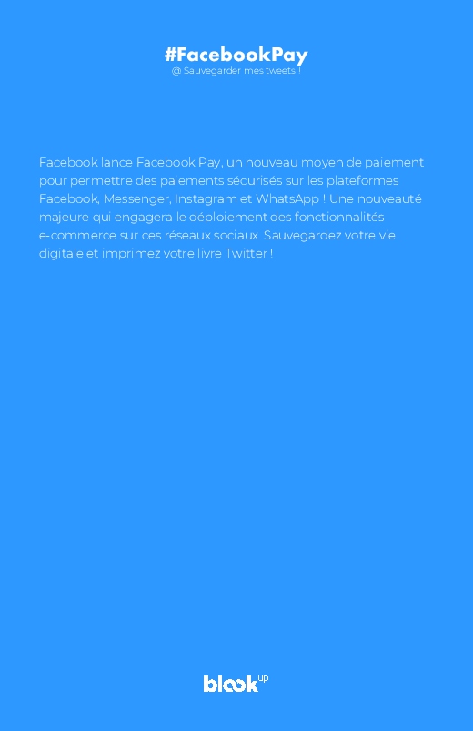 Facebook lance Facebook Pay, un nouveau moyen de paiement pour permettre des paiements sécurisés sur les plateformes Facebook, Messenger, Instagram et WhatsApp ! Une nouveauté majeure qui engagera le déploiement des fonctionnalités e-commerce sur ces réseaux sociaux. Sauvegardez votre vie digitale et imprimez votre livre Twitter !