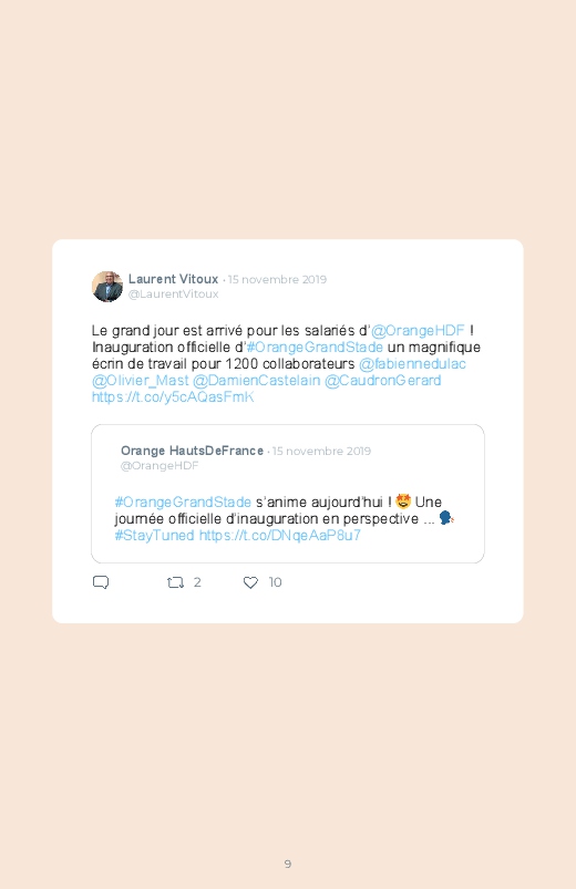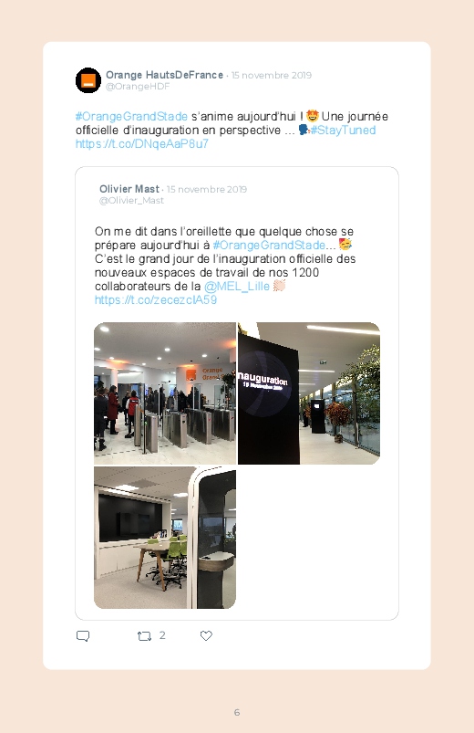 Orange installe les 1 200 salariés de son siège régional au grand stade de Villeneuve d'Ascq. Partagez avec eux cette inauguration avec ce livre Twitter qui sauvegarde les tweets du #orangegrandstade.