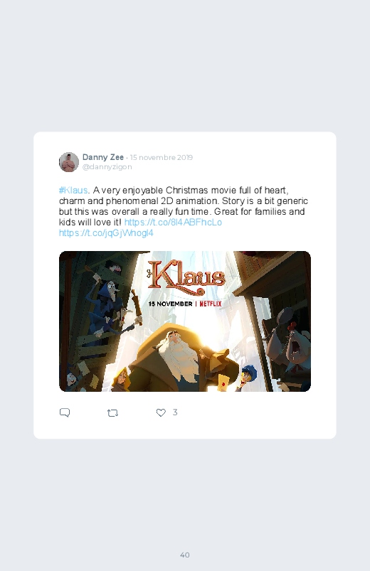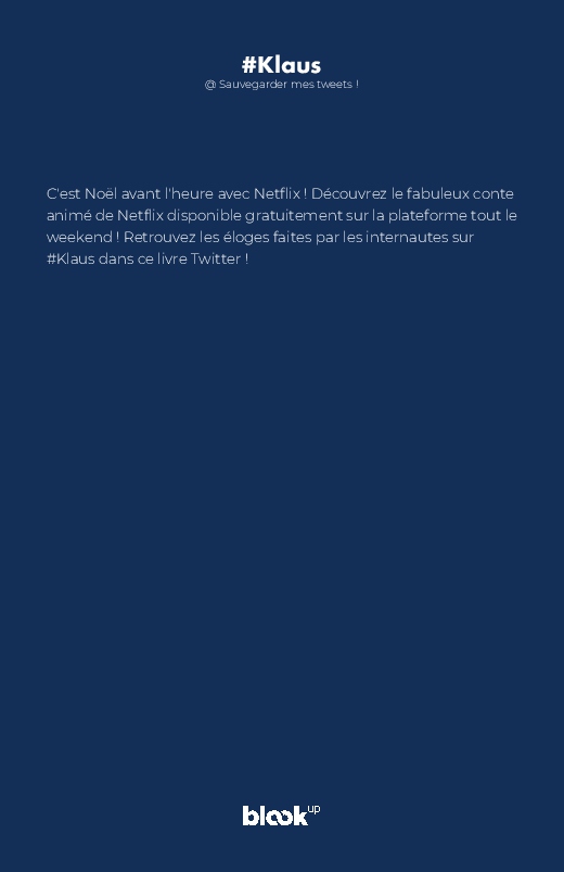 C'est Noël avant l'heure avec Netflix ! Découvrez le fabuleux conte animé de Netflix disponible gratuitement sur la plateforme tout le weekend ! Retrouvez les éloges faites par les internautes sur #Klaus dans ce livre Twitter !