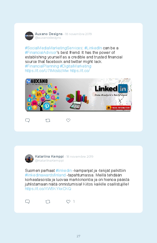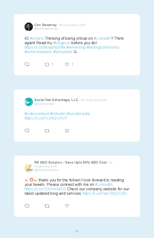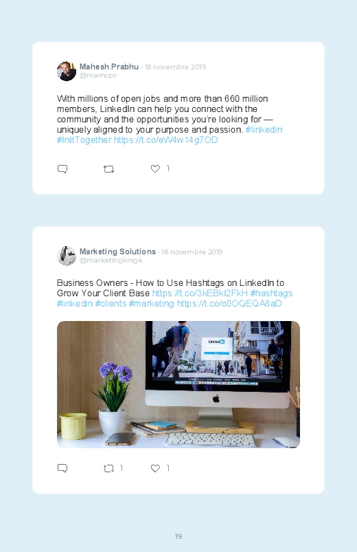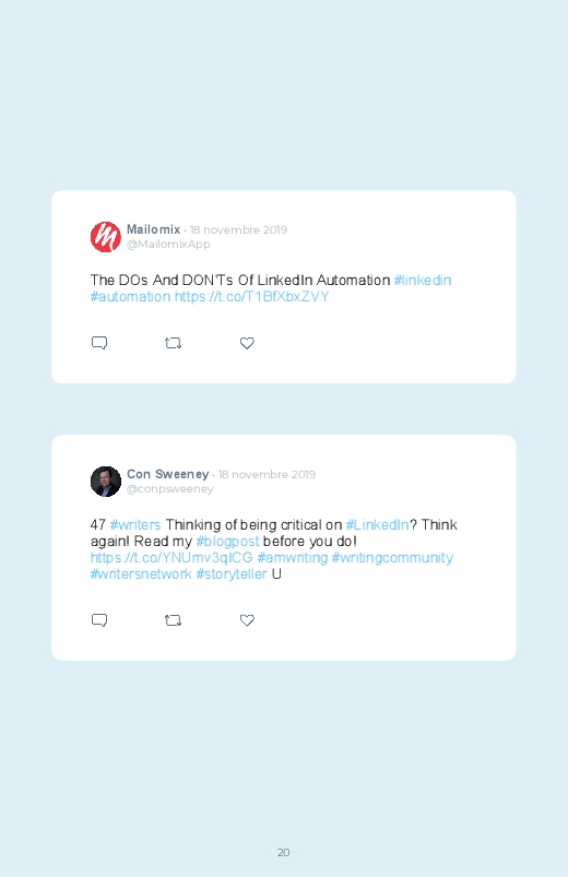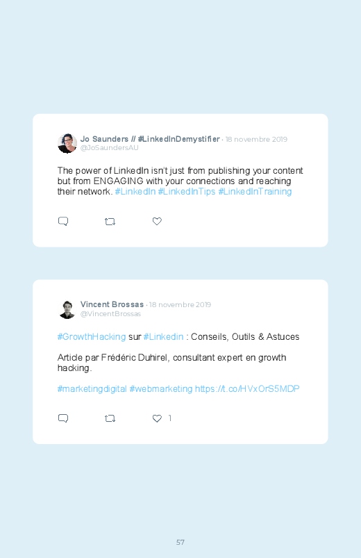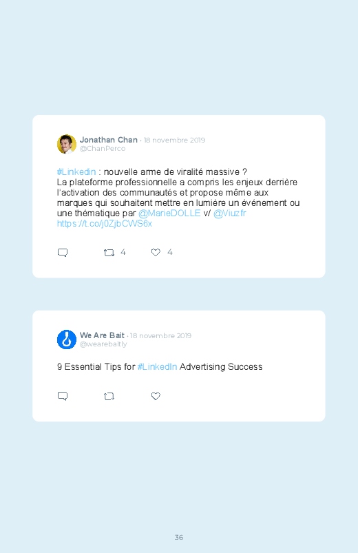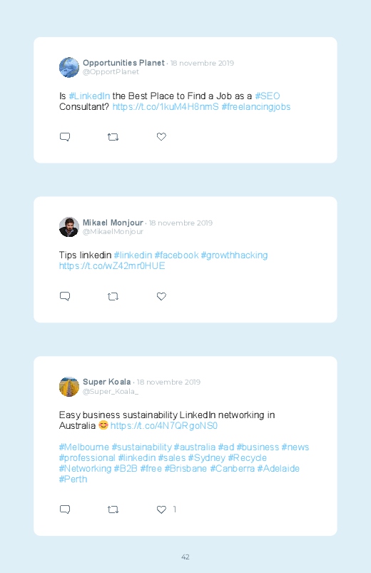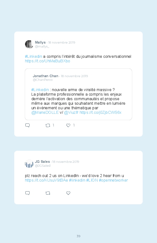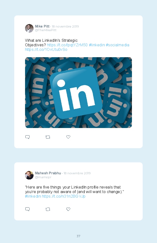 Pour bien commencer la semaine, pourquoi pas réaliser le livre Twitter d'un de nos réseau social préféré : Linkedin. Retrouvez les tweets sauvegardés concernant ses nouveautés et astuces partagées tous les jours par les internautes.