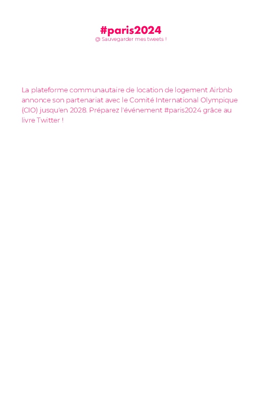 La plateforme communautaire de location de logement Airbnb annonce son partenariat avec le Comité International Olympique (CIO) jusqu’en 2028. Préparez l’événement #paris2024 grâce au livre Twitter !