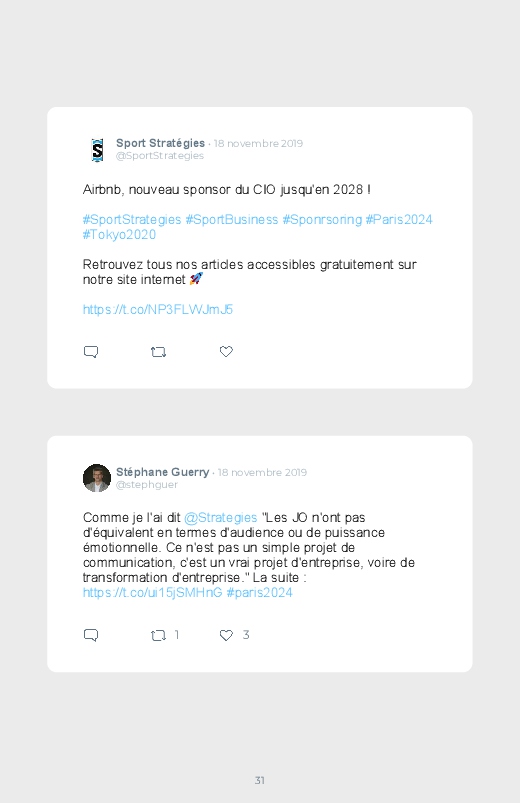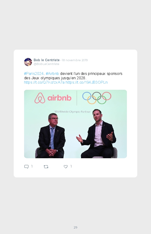 La plateforme communautaire de location de logement Airbnb annonce son partenariat avec le Comité International Olympique (CIO) jusqu’en 2028. Préparez l’événement #paris2024 grâce au livre Twitter !