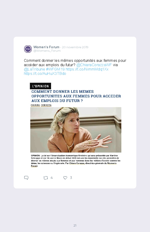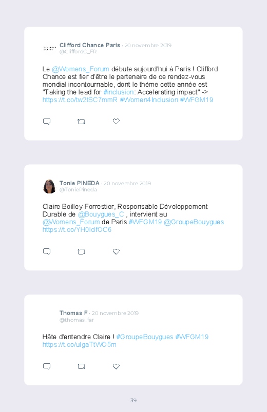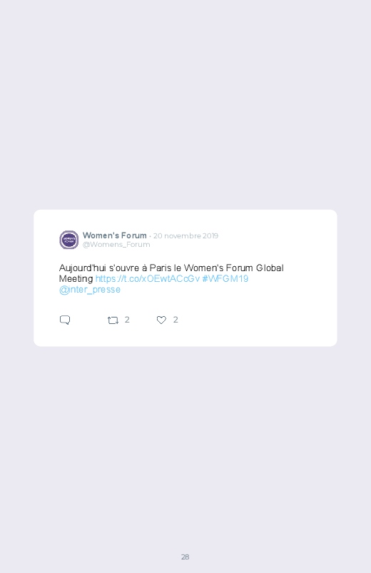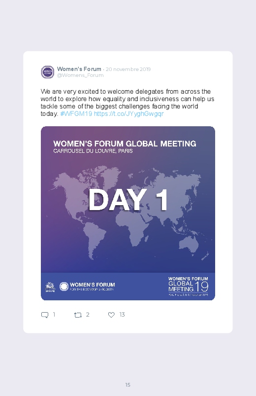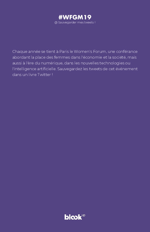Chaque année se tient à Paris le Women's Forum, une conférance abordant la place des femmes dans l'économie et la société, mais aussi à l’ère du numérique, dans les nouvelles technologies ou l’intelligence artificielle. Sauvegardez les tweets de cet événement dans un livre Twitter !