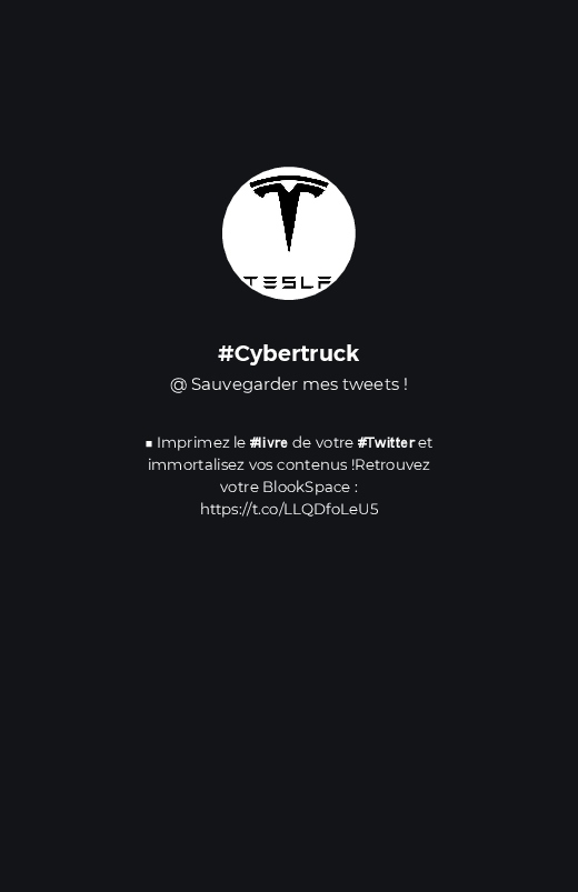 #Cybertruck hizo el libro de sus cuenta de Twitter ! ¡Apoya su creatividad comprando su blook o crea el tuyo ahora en BlookUp!