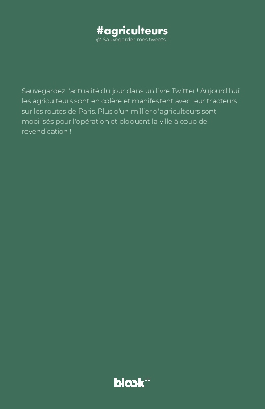 #agriculteurs made the blook of their their Twitter account ! Support their creativity by buying their blook or create your own now on BlookUp!