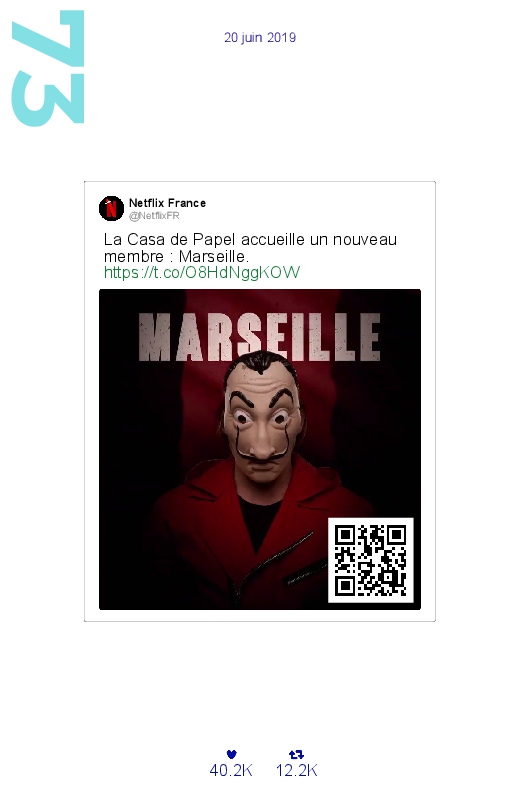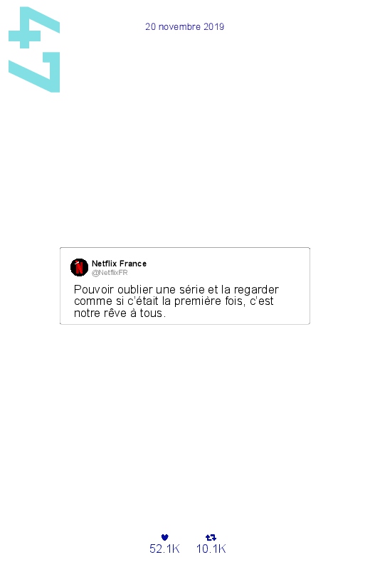 Netflix France a récemment été promu le compte Twitter le plus mentionné de France de l'année 2019 ! On les félicite (avec un peu de jalousie aussi 🤫) et on leur offre le fameux livre de leur Top 100 tweets de l'année 2019 ! TOU DOUM !