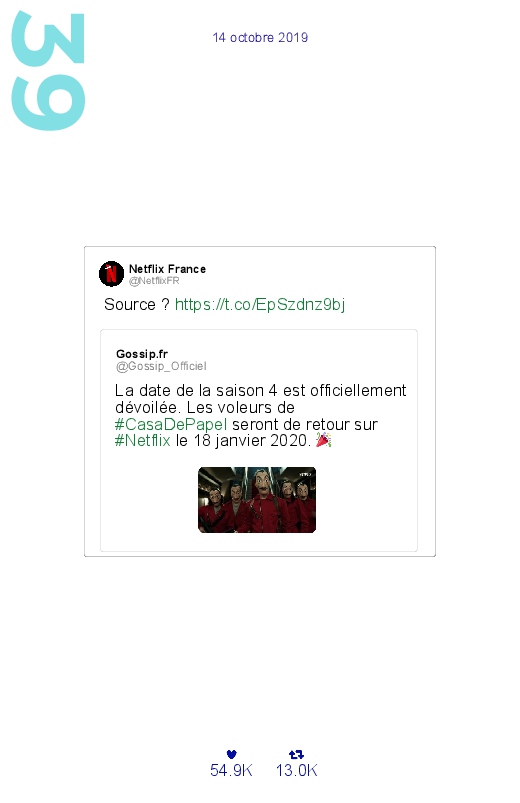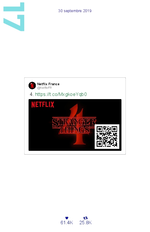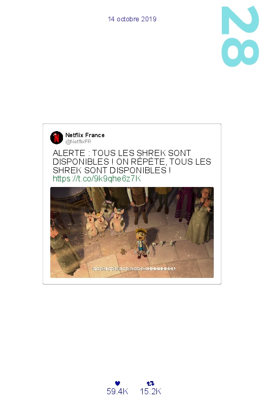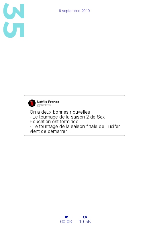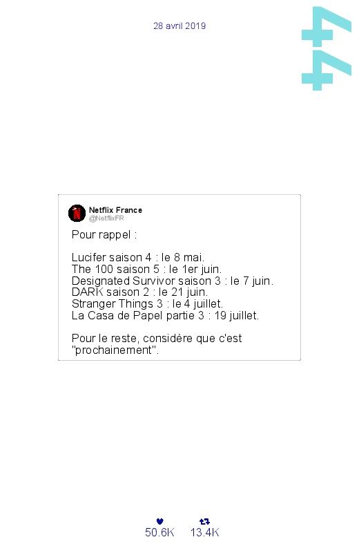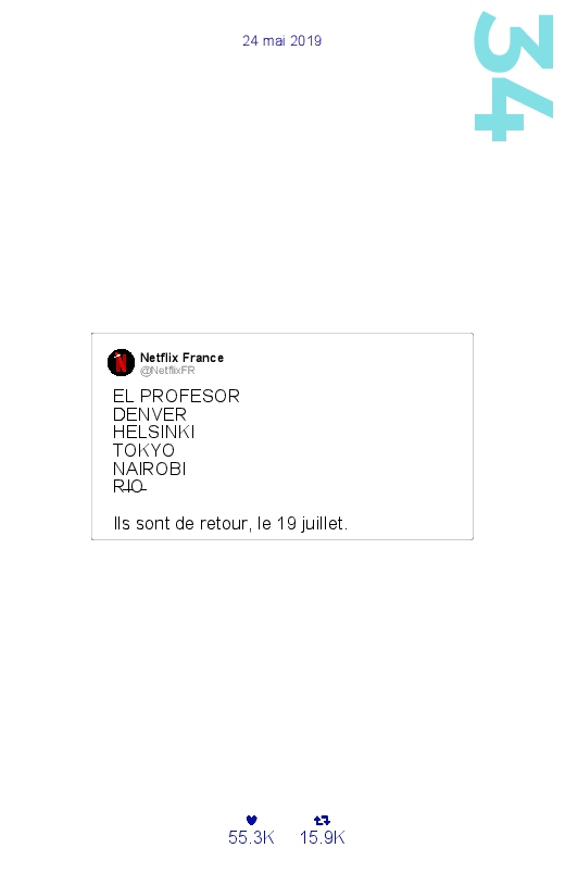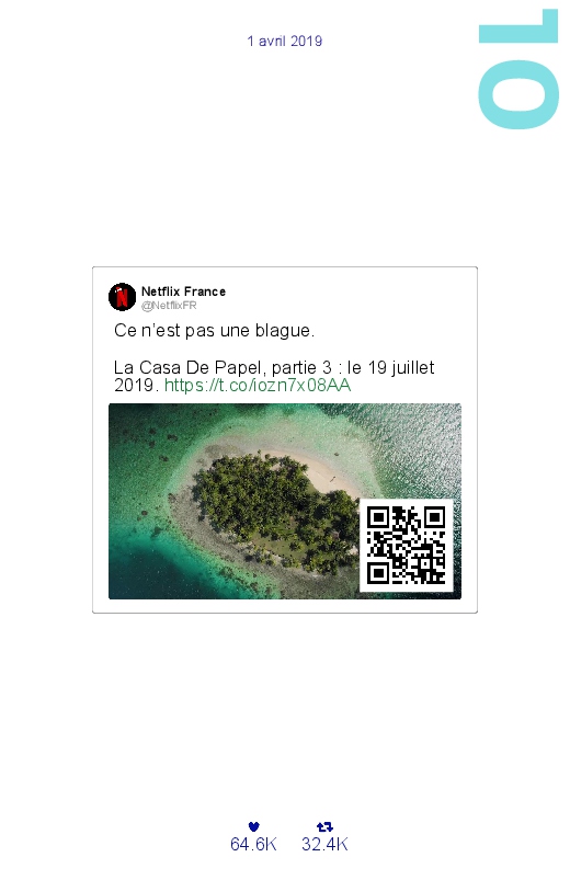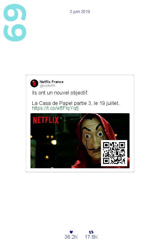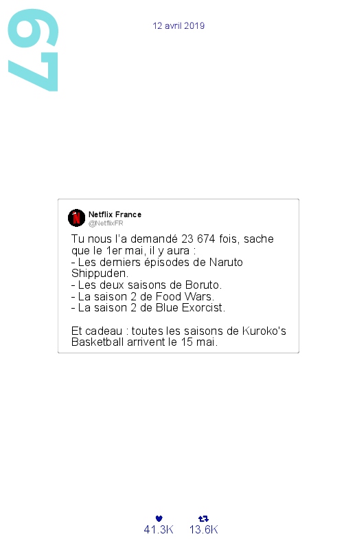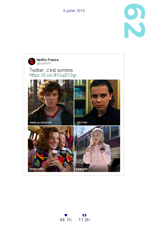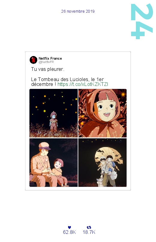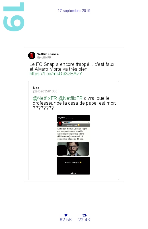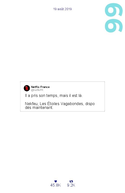 Netflix France a récemment été promu le compte Twitter le plus mentionné de France de l'année 2019 ! On les félicite (avec un peu de jalousie aussi 🤫) et on leur offre le fameux livre de leur Top 100 tweets de l'année 2019 ! TOU DOUM !