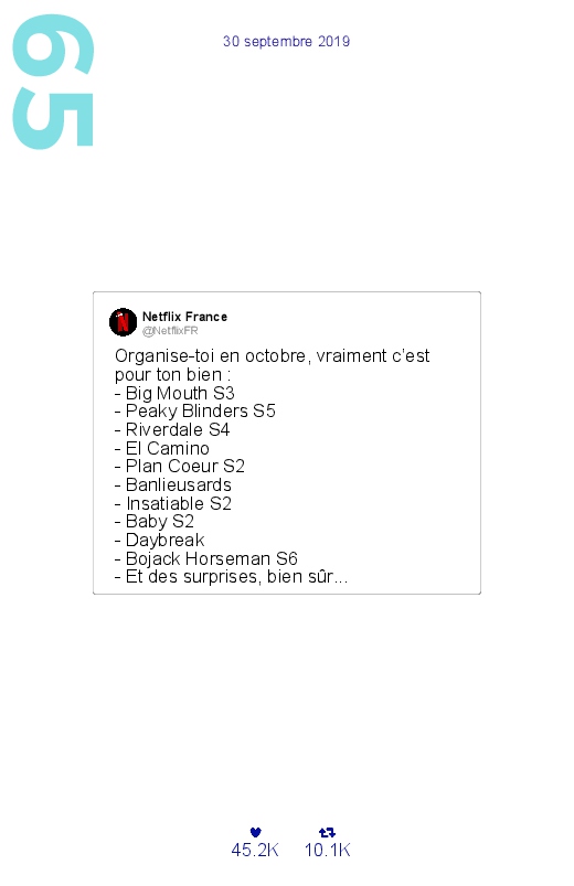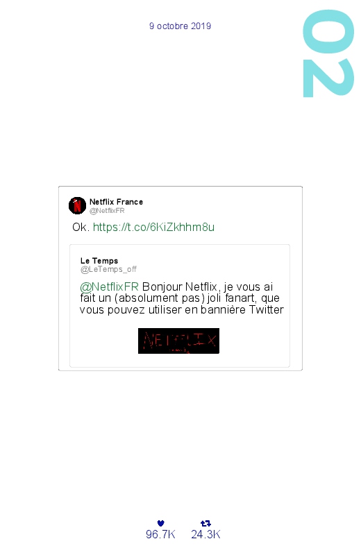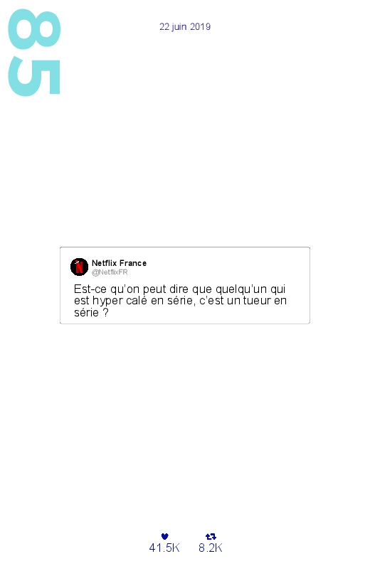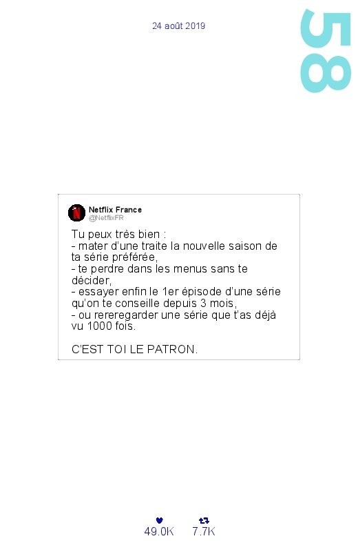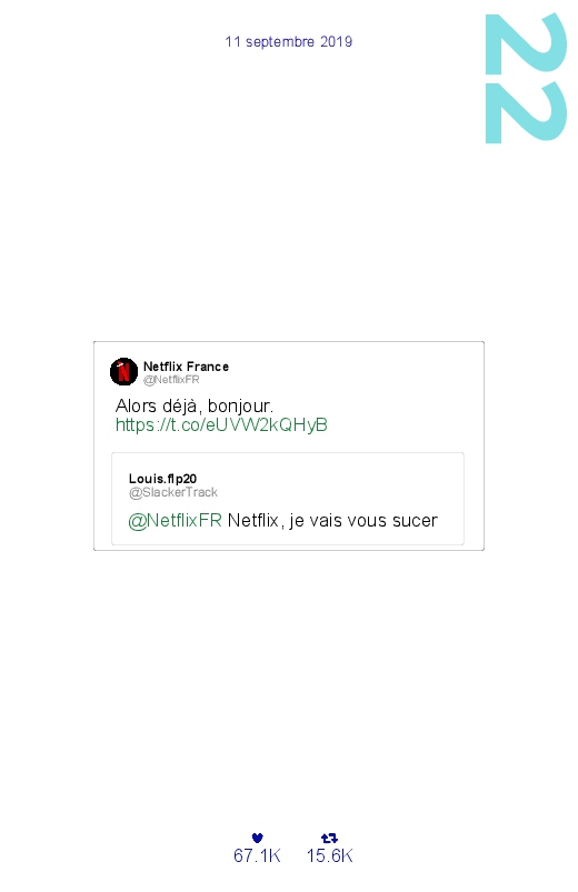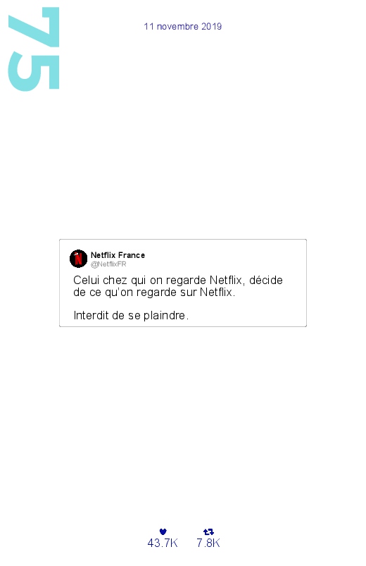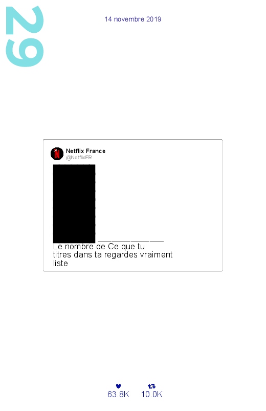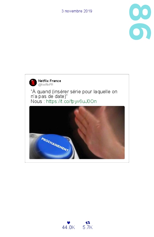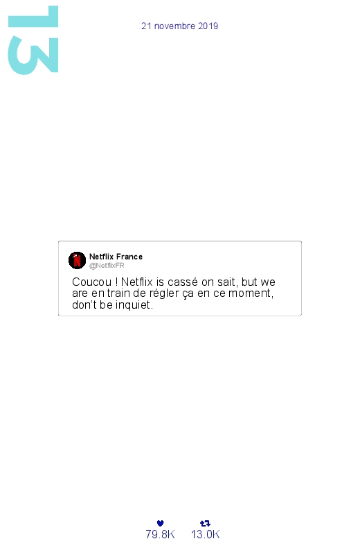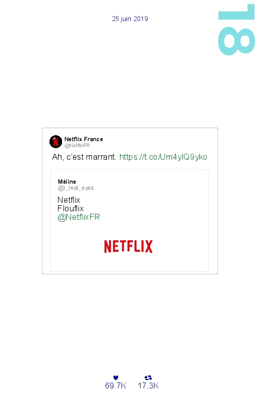 Netflix France made the blook of their their Twitter account ! Support their creativity by buying their blook or create your own now on BlookUp!