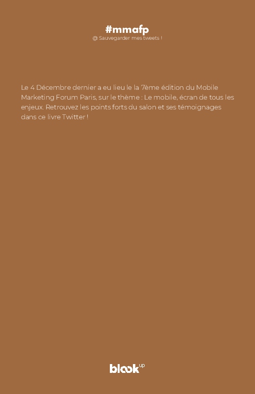 Le 4 Décembre dernier a eu lieu le la 7ème édition du Mobile Marketing Forum Paris, sur le thème : Le mobile, écran de tous les enjeux. Retrouvez les points forts du salon et ses témoignages dans ce livre Twitter !