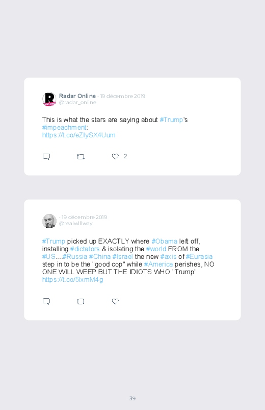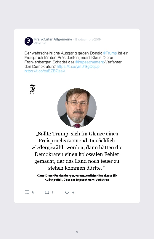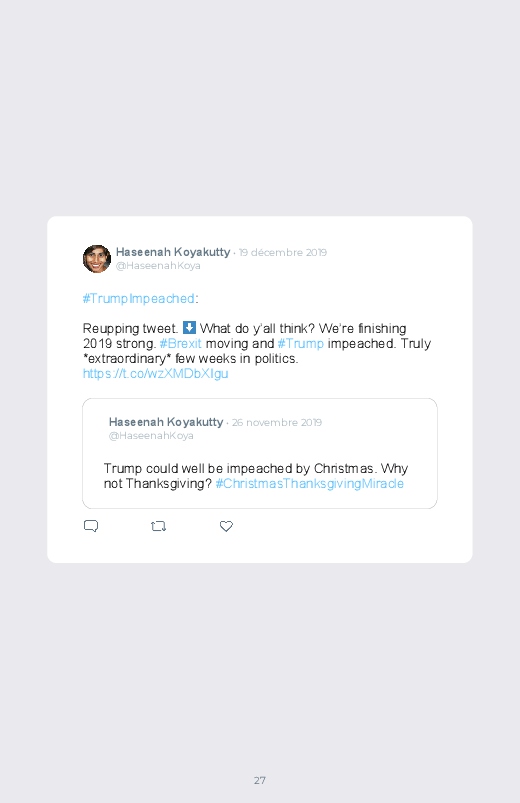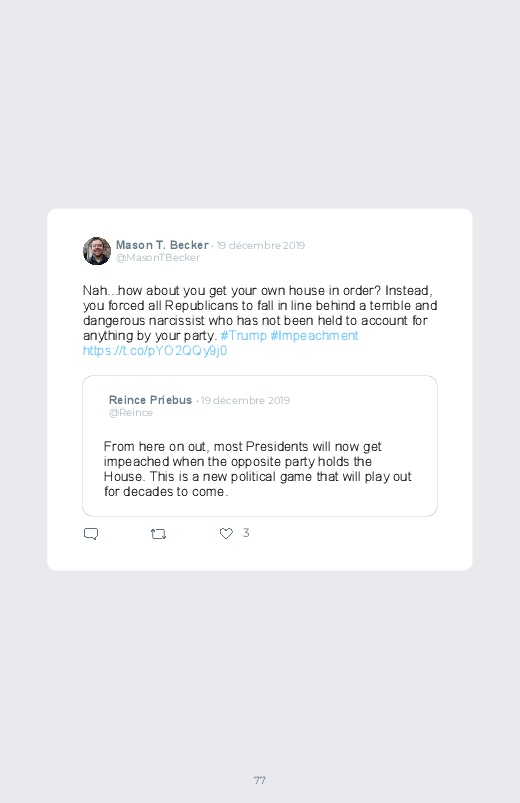 C'est le jour du résultat concernant l’impeachment de Donald Trump, le président des Etats-Unis. Un jour décisif et historique pour la scène politique américaine. Retrouvez les réactions dans ce livre Twitter !