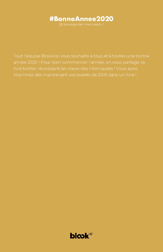 Tout l'équipe BlookUp vous souhaite à tous et à toutes une bonne année 2020 ! Pour bien commencer l'année, on vous partage ce livre twitter réunissant les voeux des internautes ! Vous aussi imprimez dès maintenant vos tweets de 2019 dans un livre !