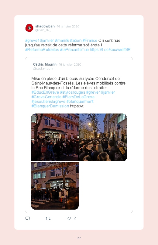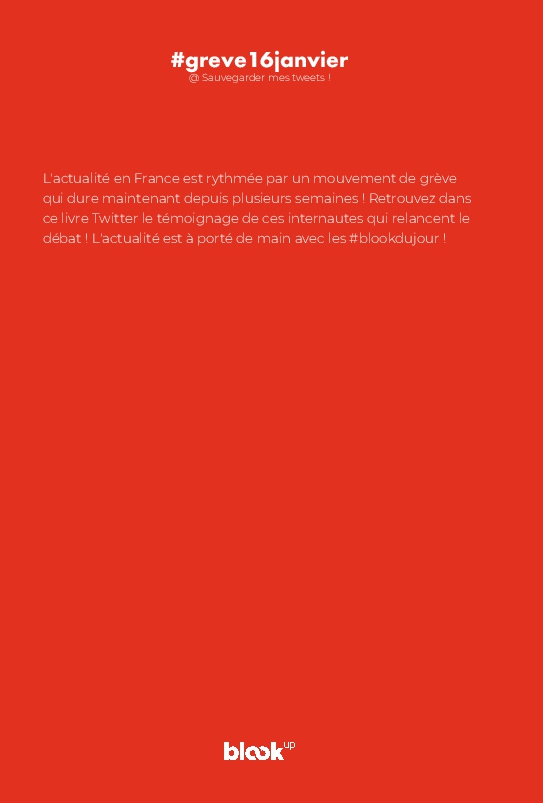 L'actualité en France est rythmée par un mouvement de grève qui dure maintenant depuis plusieurs semaines ! Retrouvez dans ce livre Twitter le témoignage de ces internautes qui relancent le débat ! L'actualité est à porté de main avec les #blookdujour !