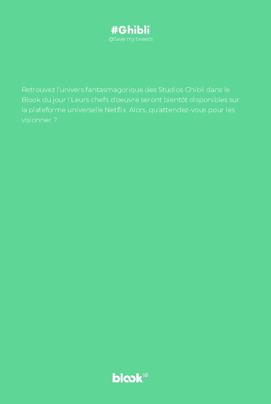 Retrouvez l'univers fantasmagorique des Studios Ghibli dans le Blook du jour ! Leurs chefs d'oeuvre seront bientôt disponibles sur la plateforme universelle Netflix. Alors, qu'attendez-vous pour les visionner ?