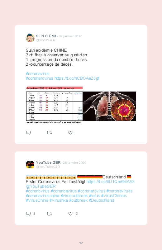 Le #coronavirus inquiète de plus en plus les populations et les autorités sanitaires, tout en ralentissant en parallèle l'économie de la #Chine. Ce #BlookDuJour regroupe les derniers tweets au sujet de la #pandémie.