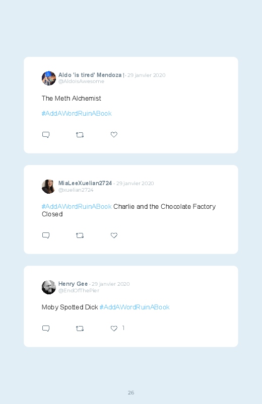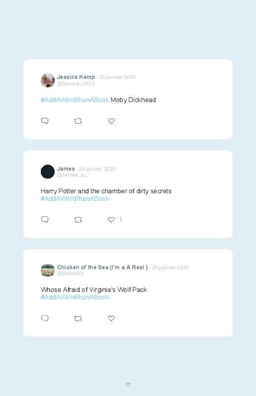 Check out the latest tweets for the #AddAWordRuinABook challenge in our #BlookOfTheDay ! ;)