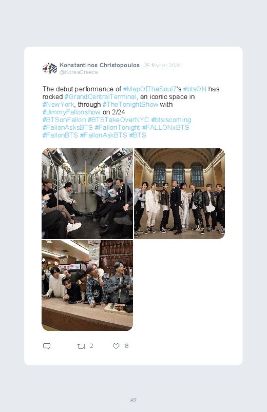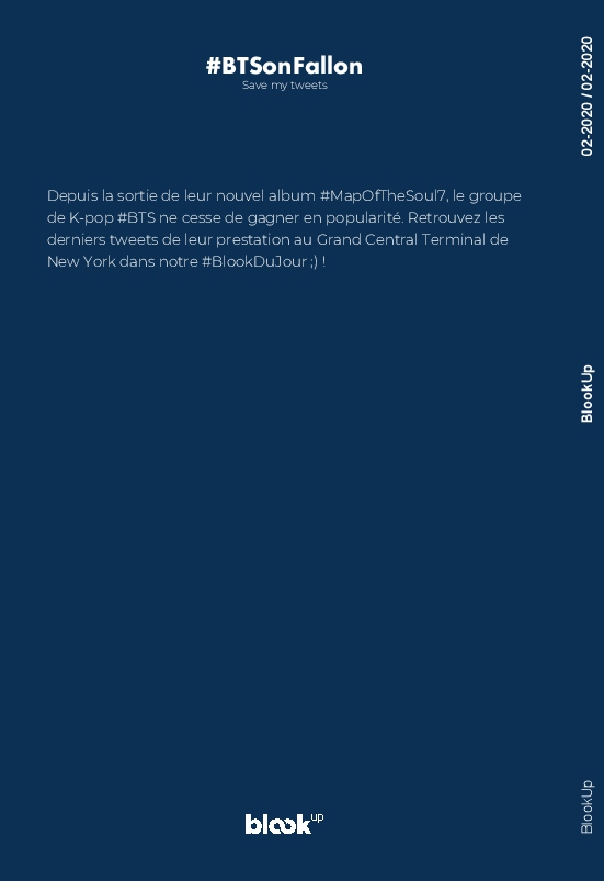 Depuis la sortie de leur nouvel album #MapOfTheSoul7, le groupe de K-pop #BTS ne cesse de gagner en popularité. Retrouvez les derniers tweets de leur prestation au Grand Central Terminal de New York dans notre #BlookDuJour ;) !