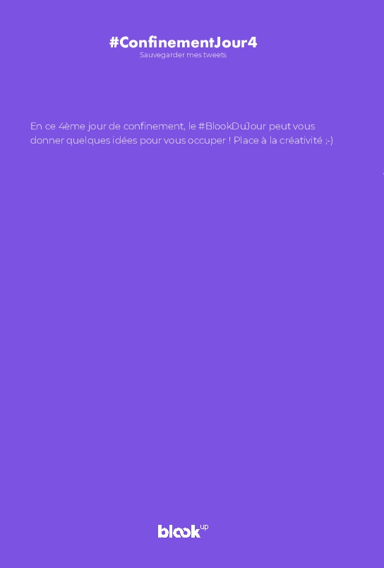 En ce 4ème jour de confinement, le #BlookDuJour peut vous donner quelques idées pour vous occuper ! Place à la créativité ;-)