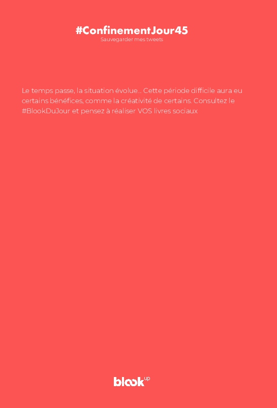Le temps passe, la situation évolue... Cette période difficile aura eu certains bénéfices, comme la créativité de certains. Consultez le #BlookDuJour et pensez à réaliser VOS livres sociaux