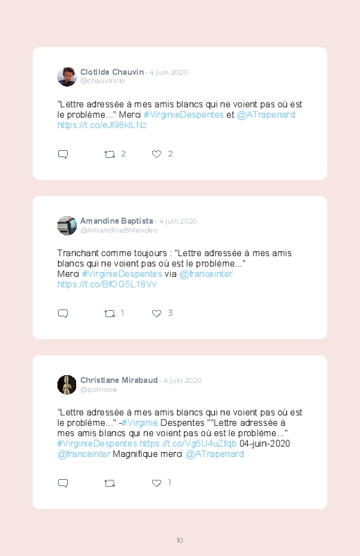 Une lettre qui a fait son effet, celle de #VirginieDespentes ! Le #BlookDuJour regroupe les meilleurs tweets à ce sujet. Pensez à imprimer votre Instagram et votre Facebook également