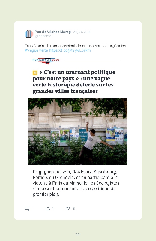 Le #BlookDuJour est consacré à la #vagueverte qui submerge la France ! Découvrez les réactions de cet élan d'écologie politique dans le blook, et pensez à sauvegarder vos tweets sur www.blookup.com :-)