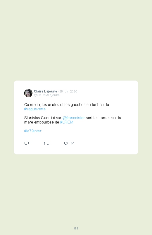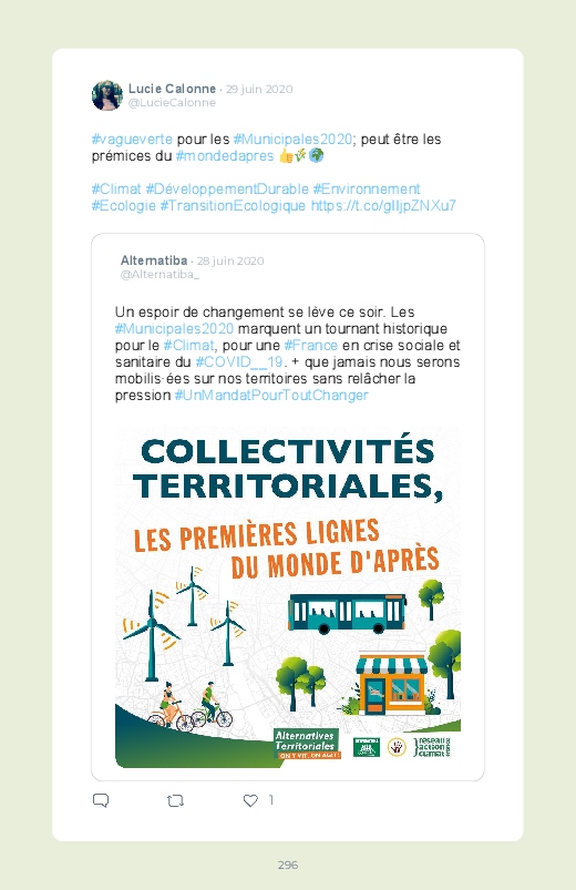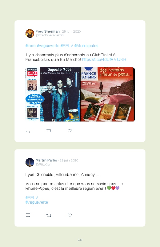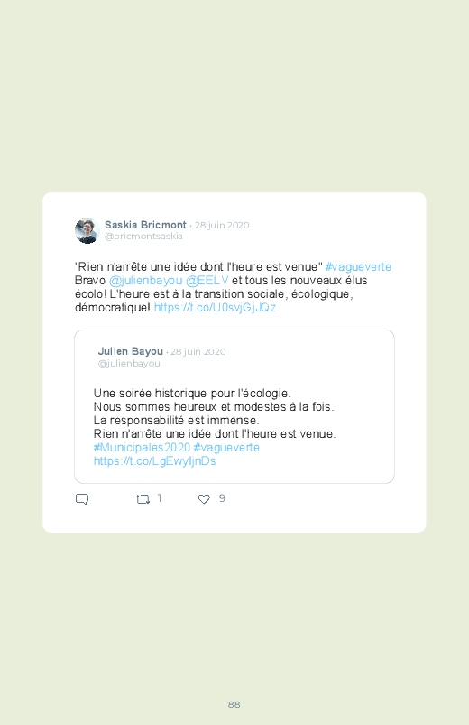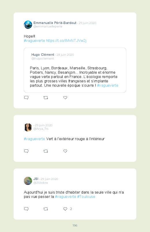 Le #BlookDuJour est consacré à la #vagueverte qui submerge la France ! Découvrez les réactions de cet élan d'écologie politique dans le blook, et pensez à sauvegarder vos tweets sur www.blookup.com :-)