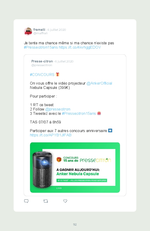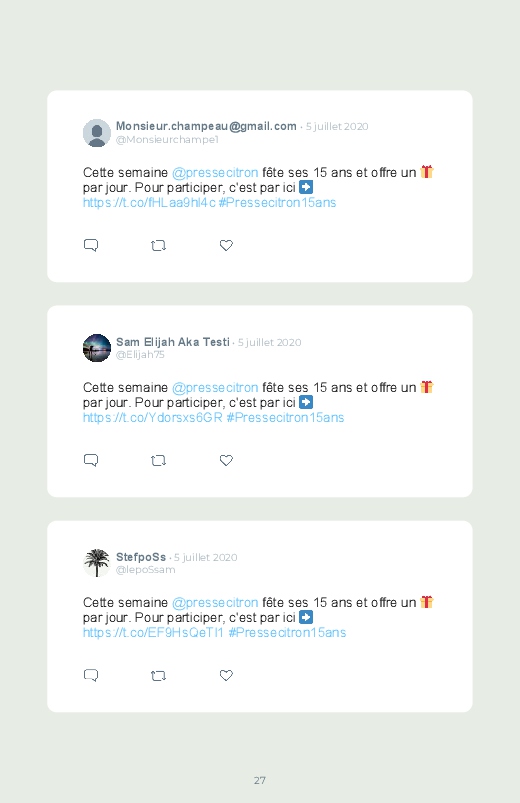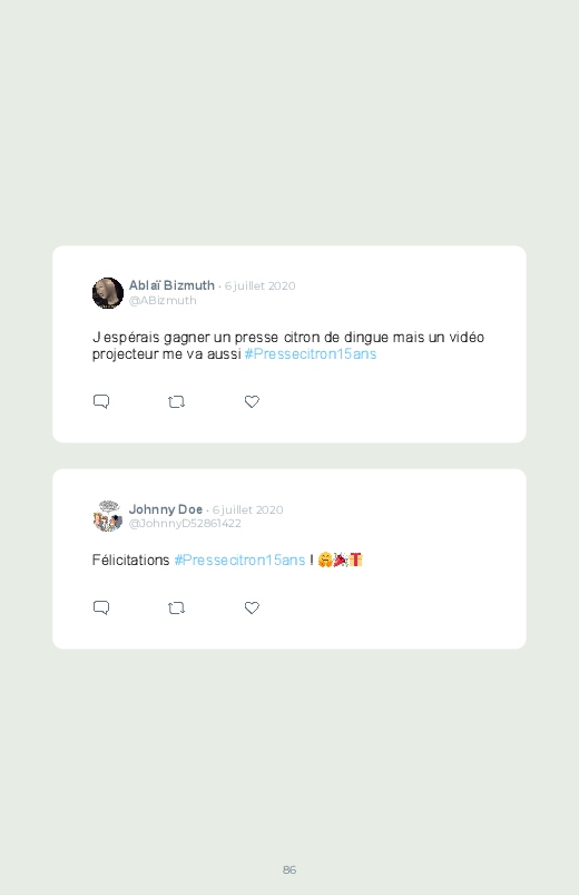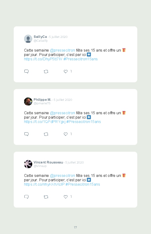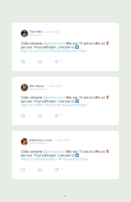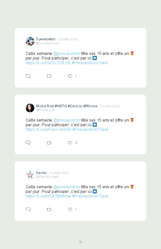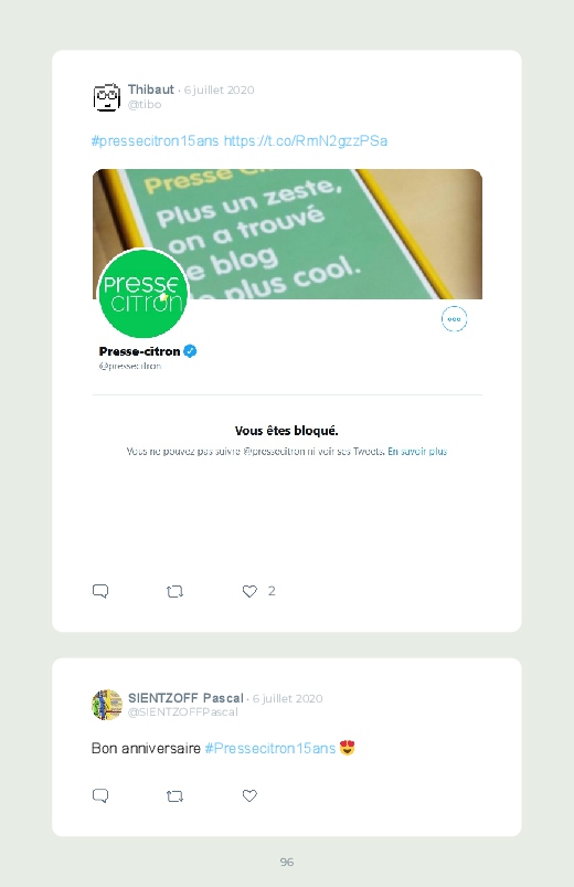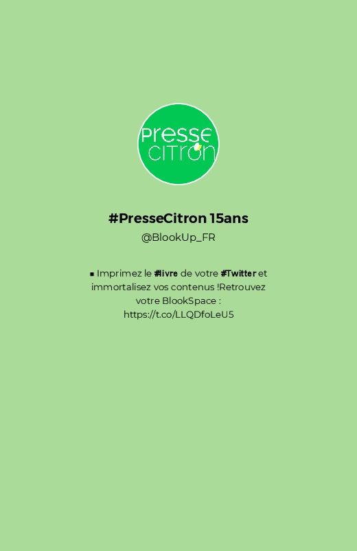 Aujourd'hui, le #BlookDuJour est consacré aux 15 ans de #Pressecitron15ans ! Jetez un oeil à notre blook et découvrez les réactions des Twittos ;-) Pensez à sauvegarder vos réseaux sociaux sur blookup.com !