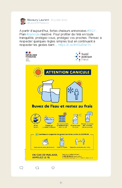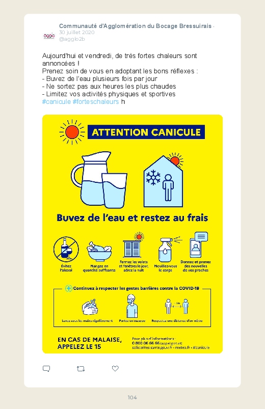 #canicule Pensez à adopter les bons réflexes: boire régulièrement de l’eau et ne pas faire des efforts physiques.
