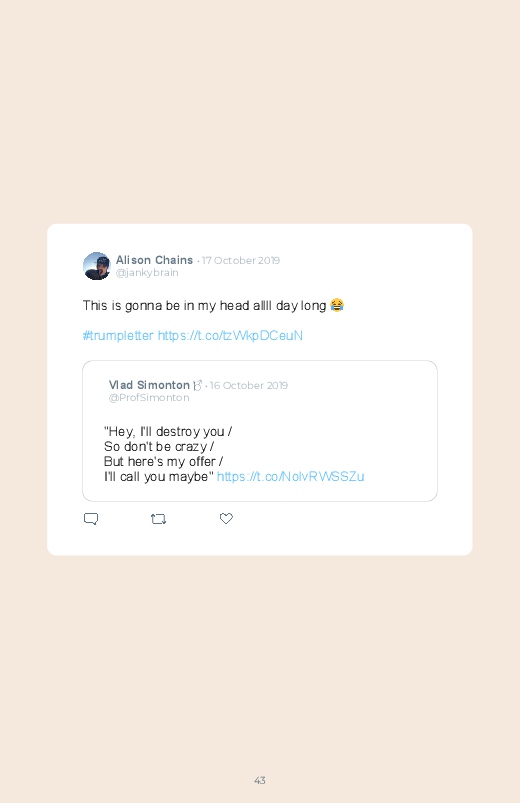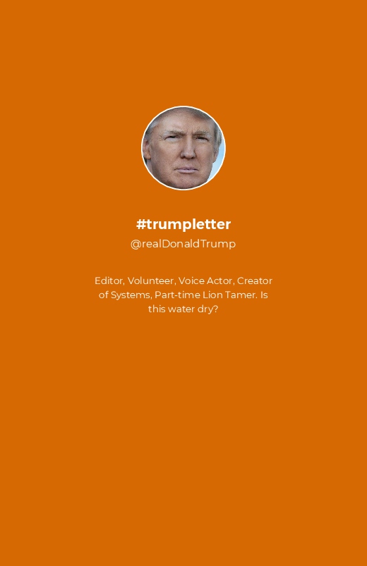 #trumpletter made the blook of their their Twitter account ! Support their creativity by buying their blook or create your own now on BlookUp!